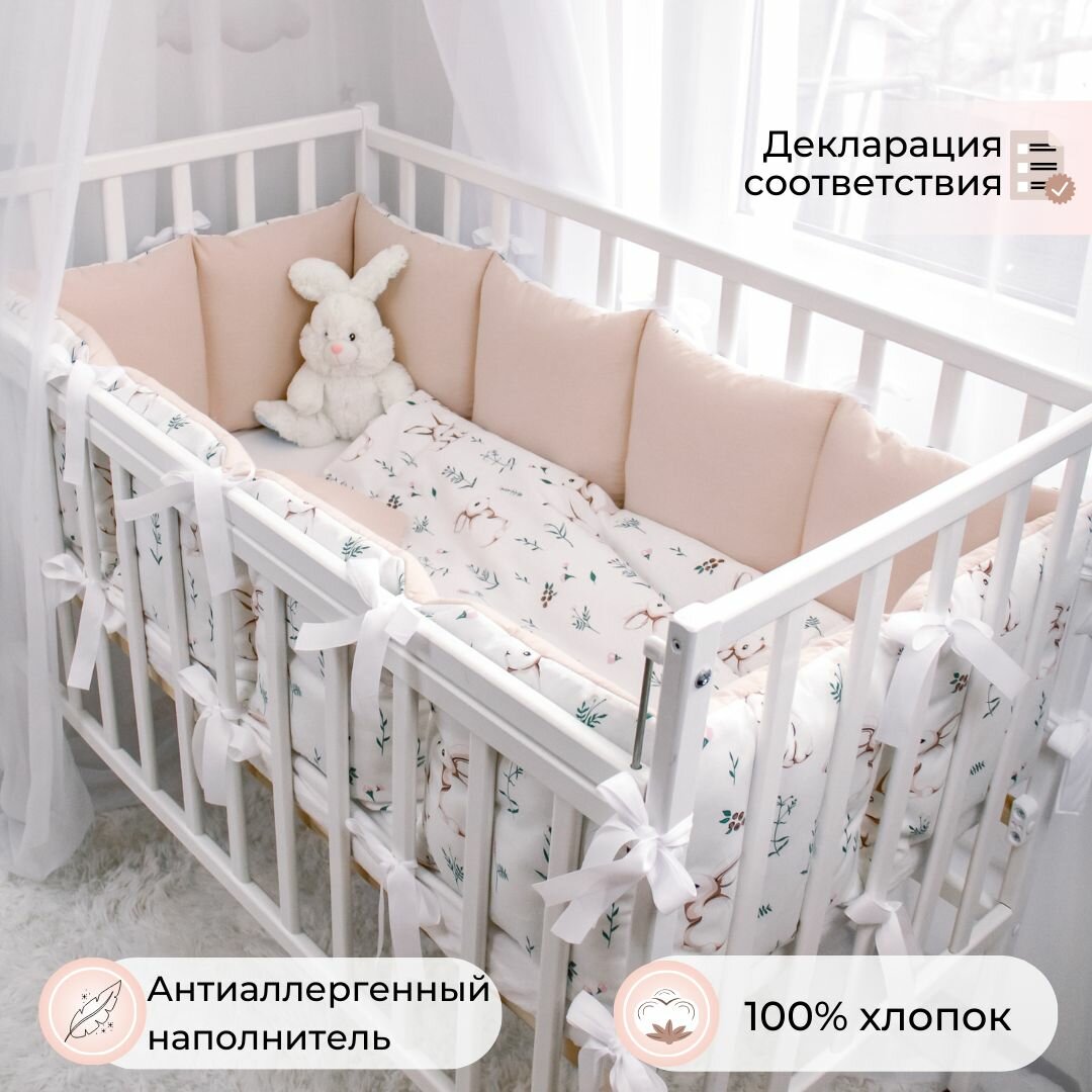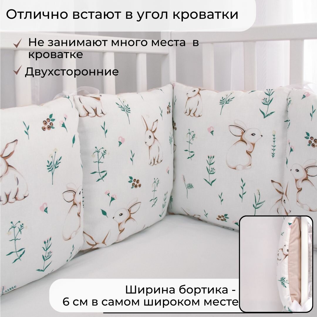 Бортики подушки в кроватку для новорожденных 120*60 "Зайчики с розовым оборотом" интересное: