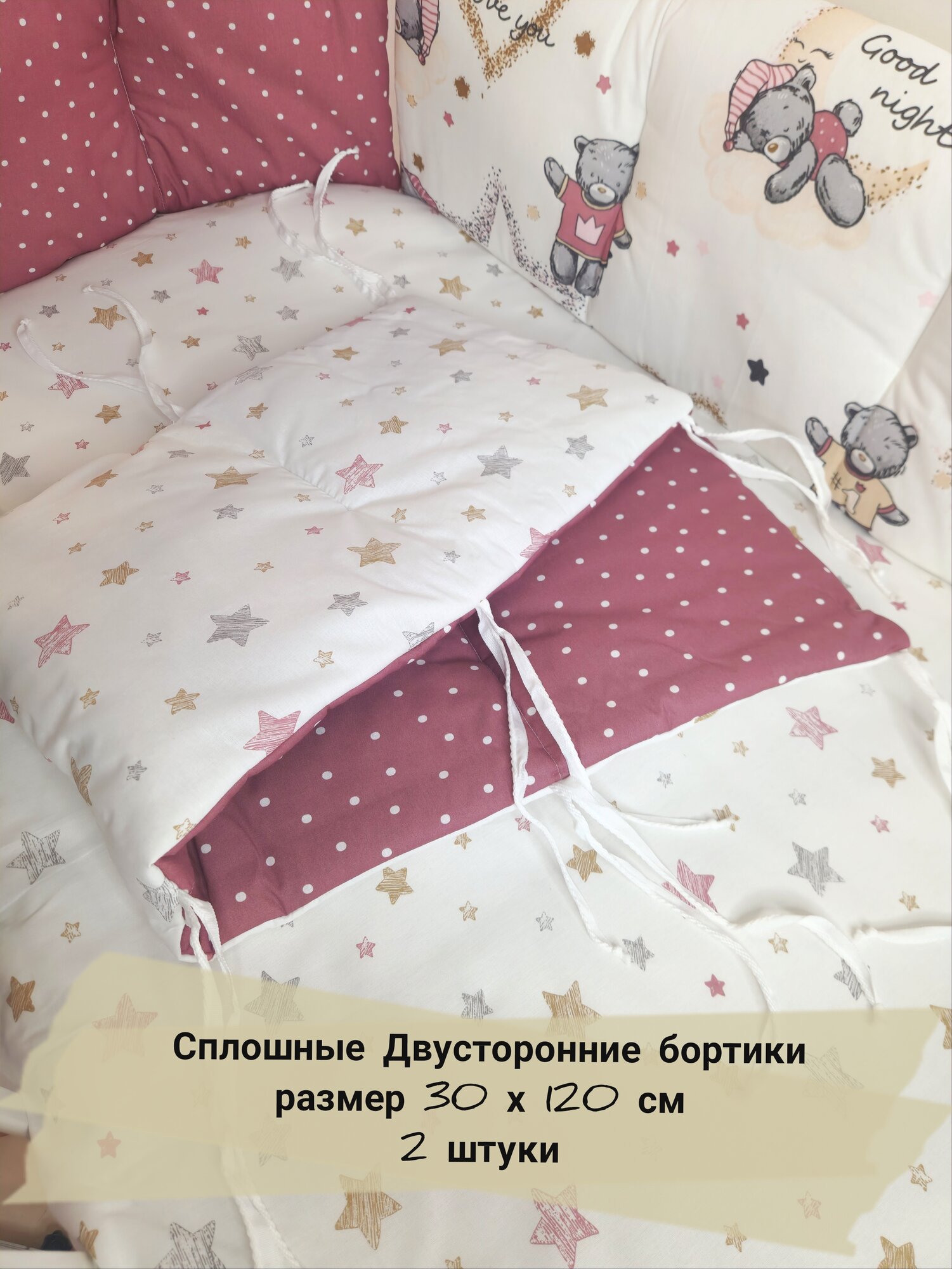 Бортики в детскую кроватку для новорожденных Мишки бруснички