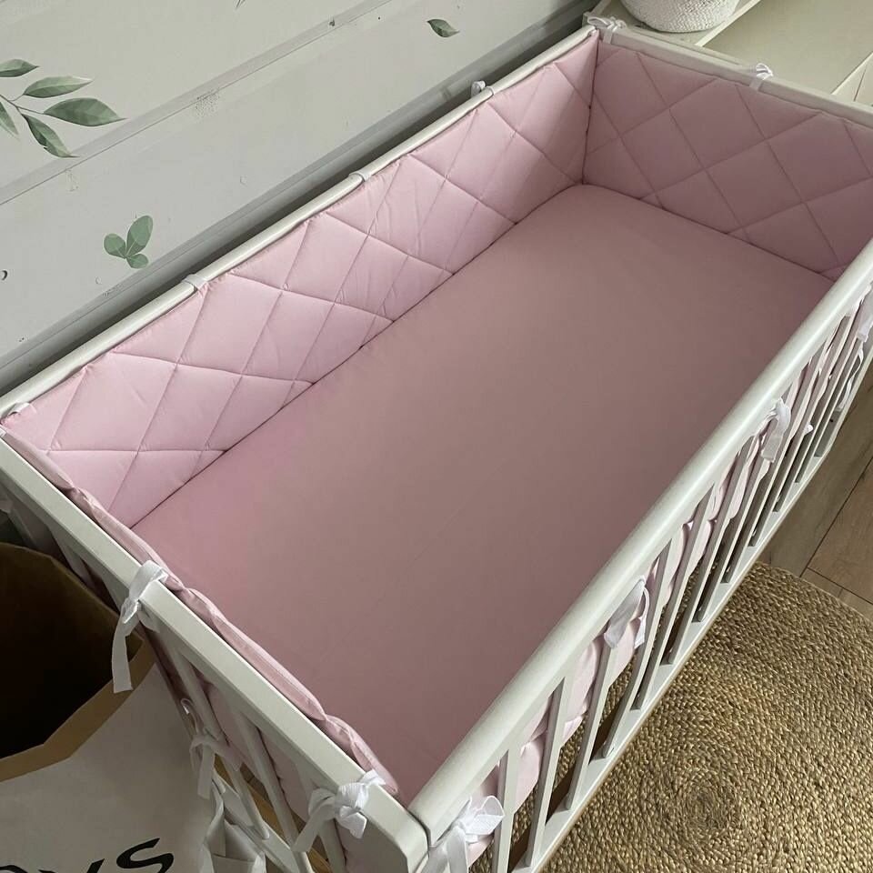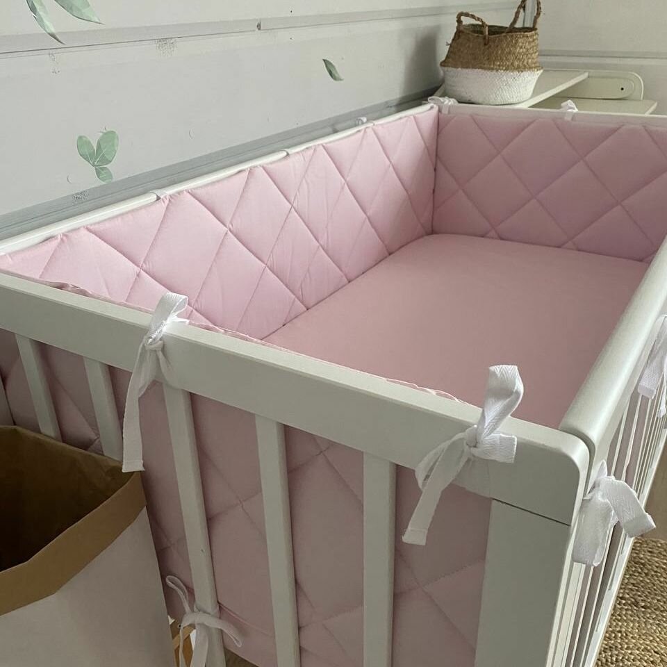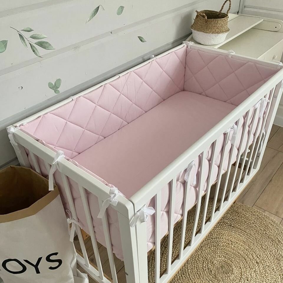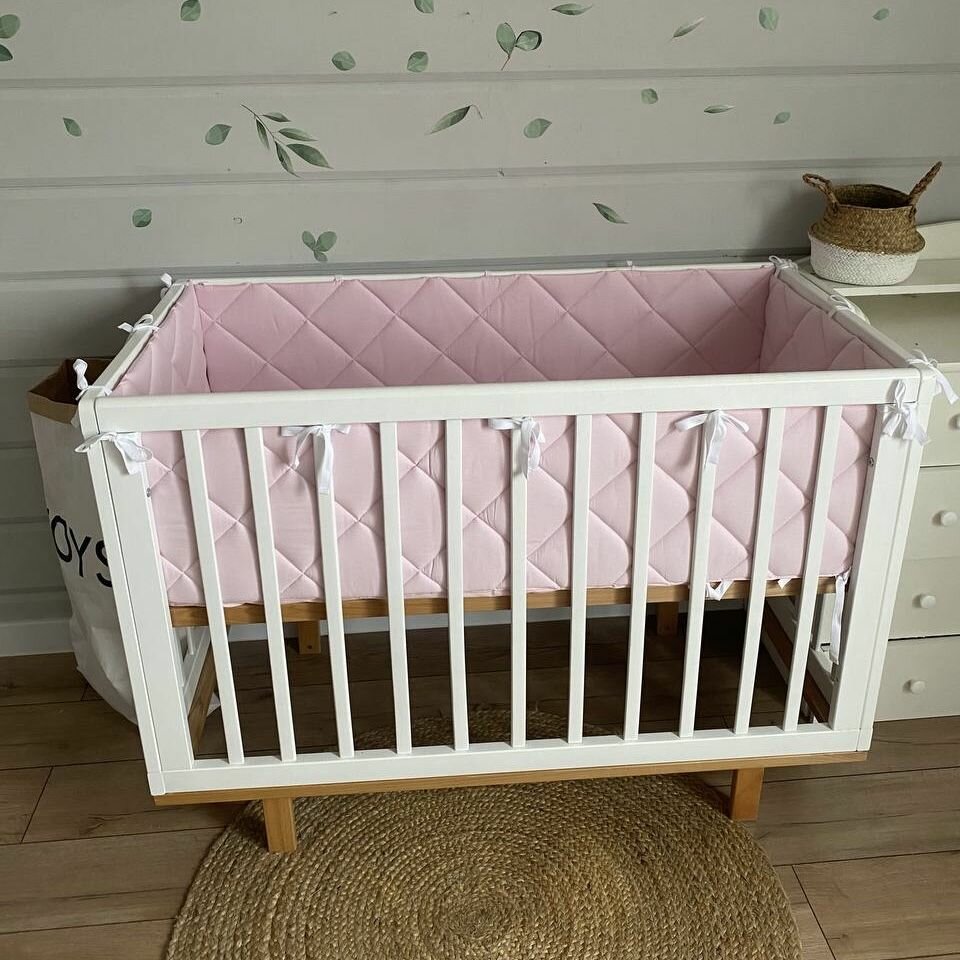 Бортики в кроватку для новорождённых, бледно розовый, 100% хлопок, 60х30 см - 2 шт, 120х30 см - 2 шт, MamiBro