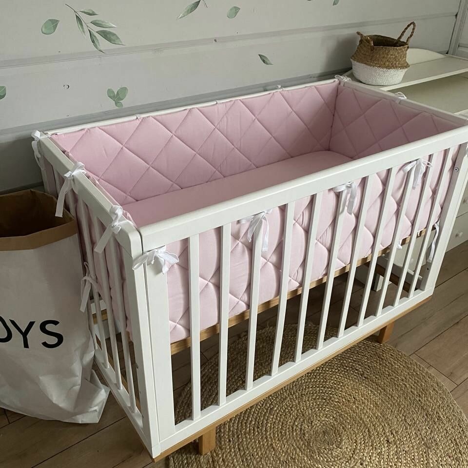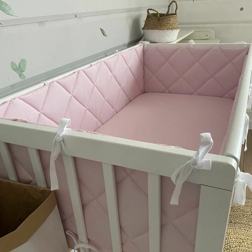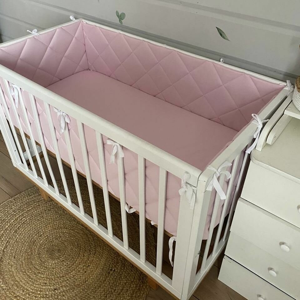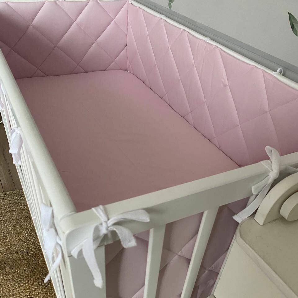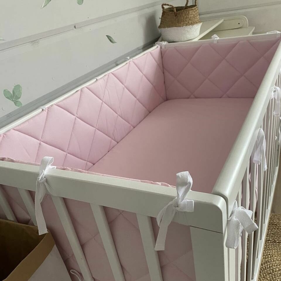 Бортики в кроватку для новорождённых, бледно розовый, 100% хлопок, 60х30 см - 2 шт, 120х30 см - 2 шт, MamiBro