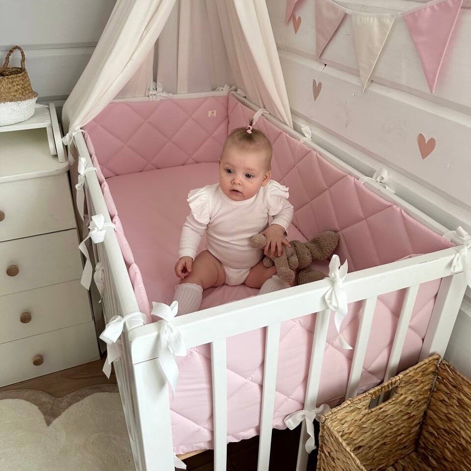Бортики в кроватку для новорождённых, бэби розовый, 100% хлопок, 60х30 см - 2 шт, 120х30 см - 2 шт, MamiBro