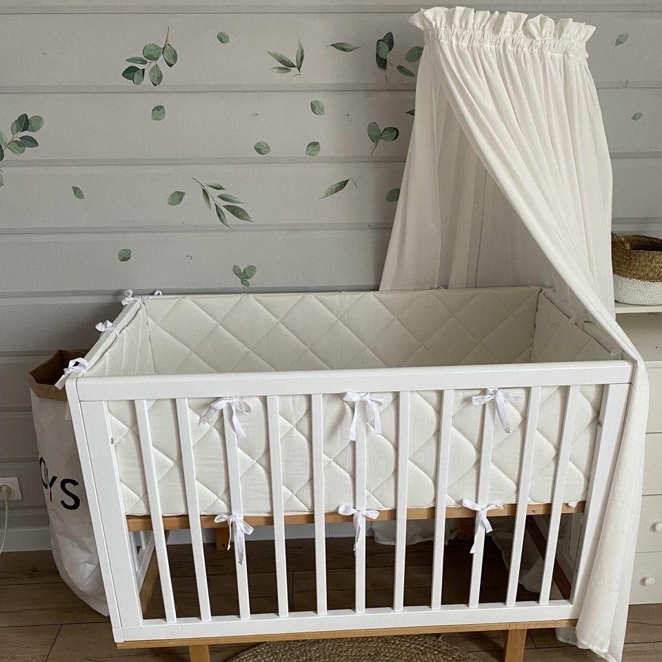 Бортики в кроватку для новорождённых, молочный, 100% хлопок, 60х30 см - 2 шт, 120х30 см - 2 шт, MamiBro