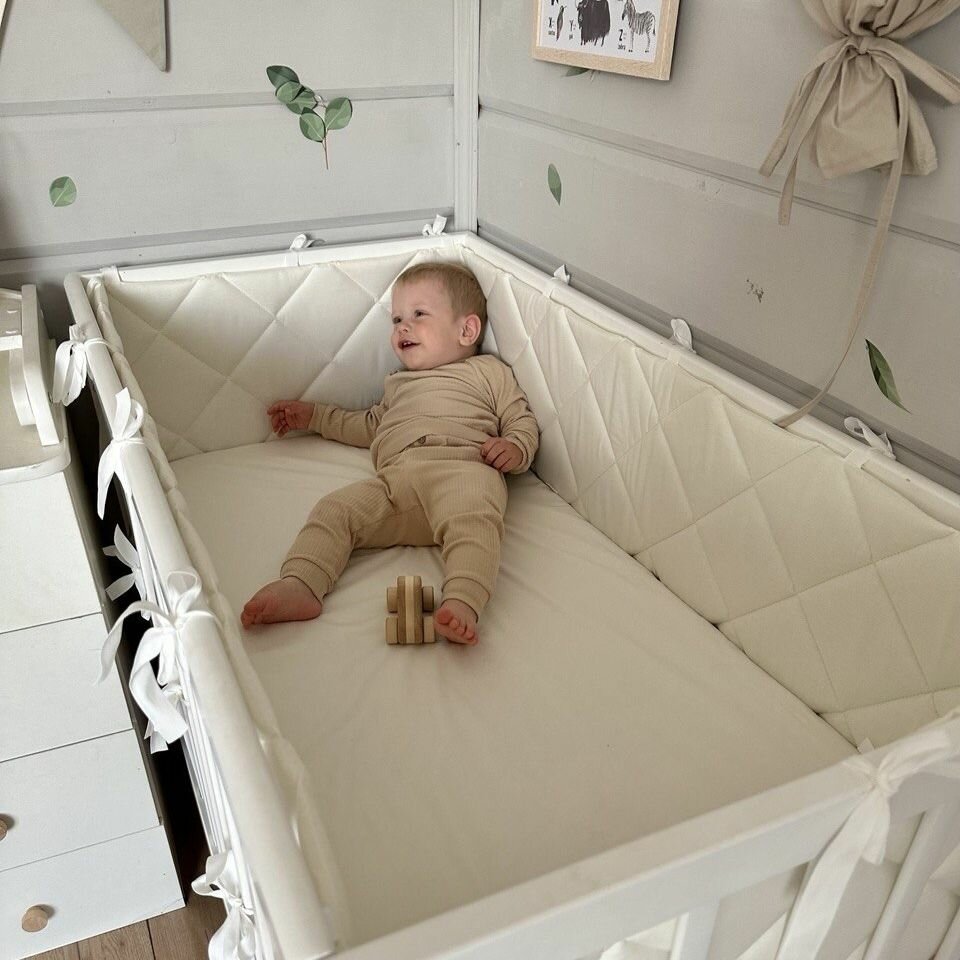 Бортики в кроватку для новорождённых стеганые MamiBro, 100% хлопок, 60х30 см - 2 шт, 120х30 см - 2 шт, светло бежевый
