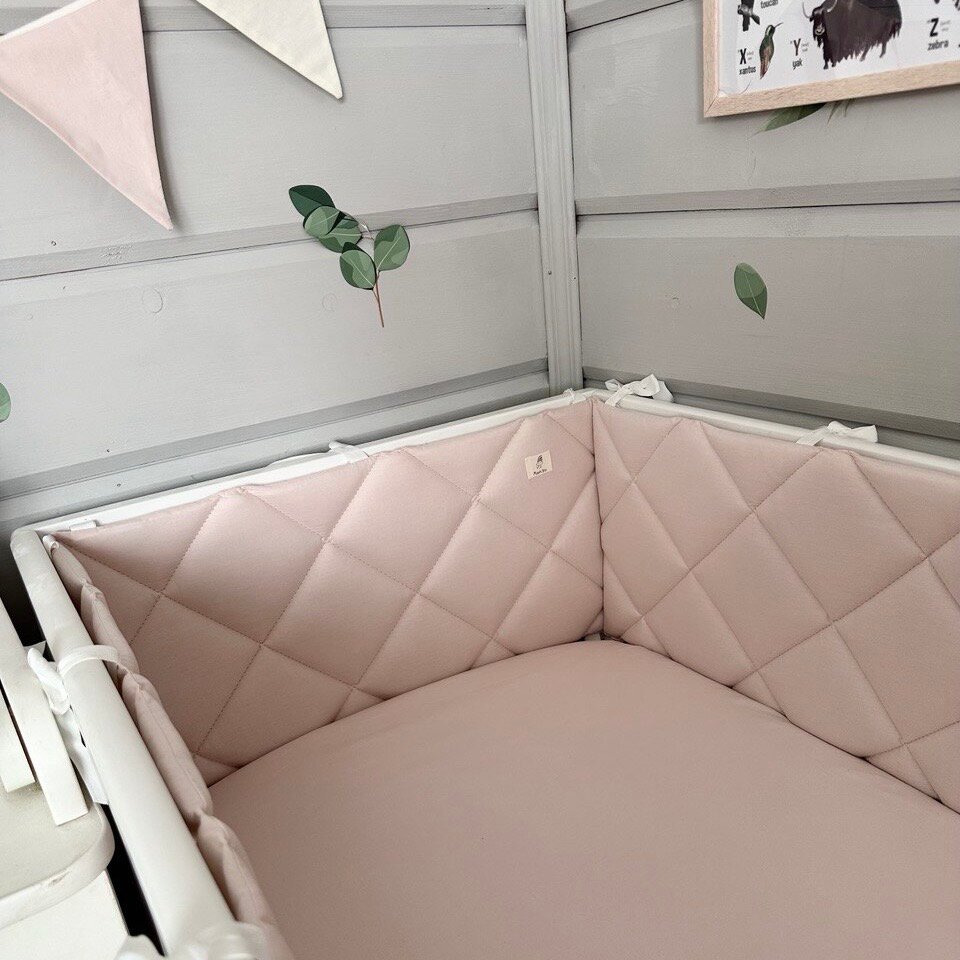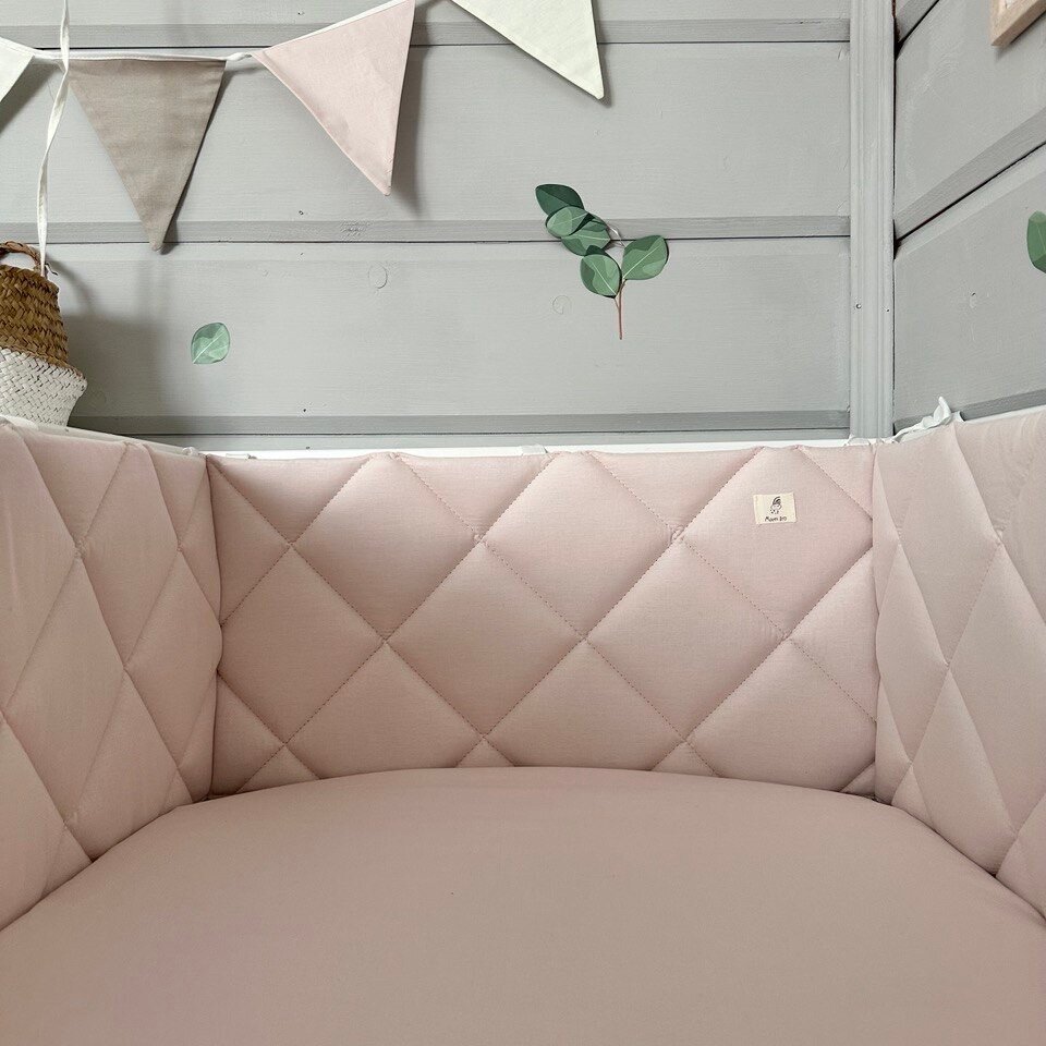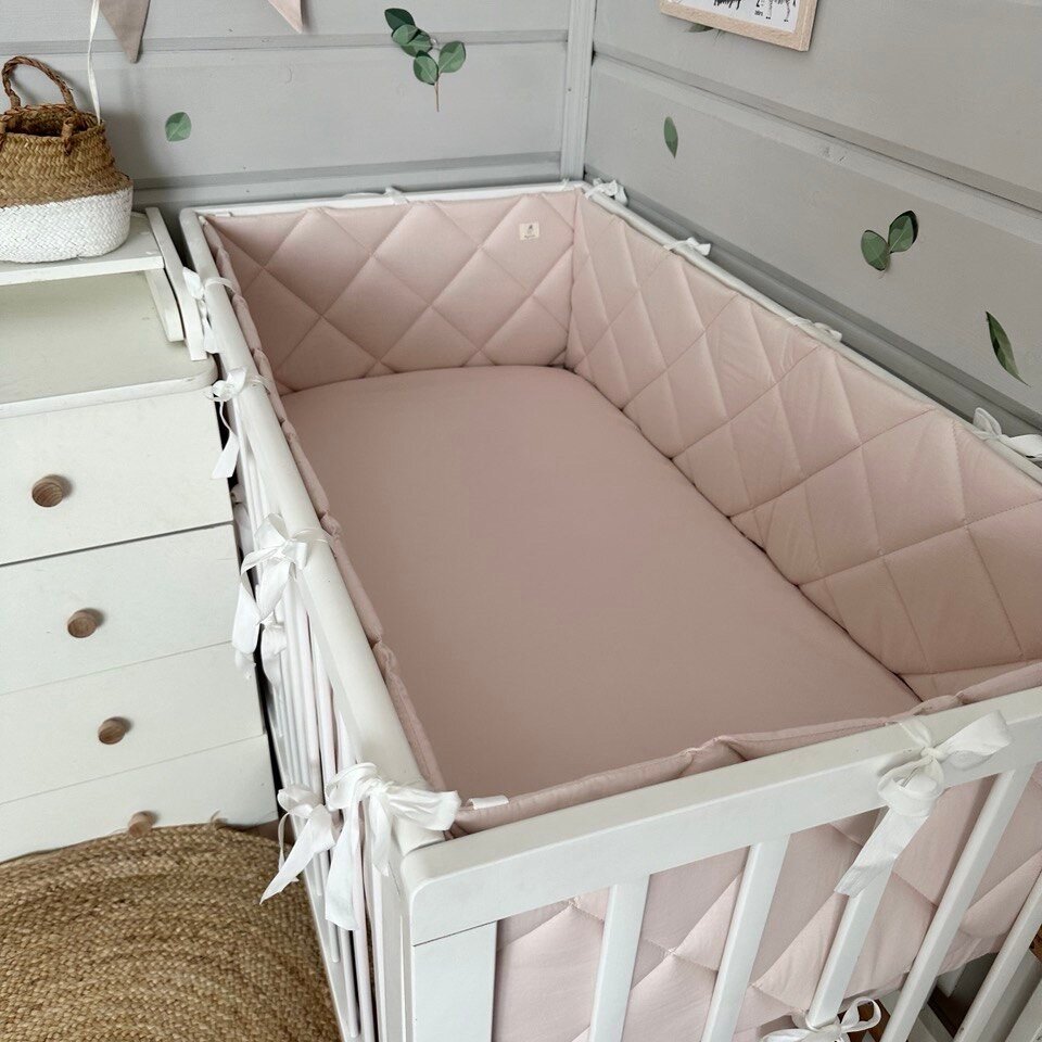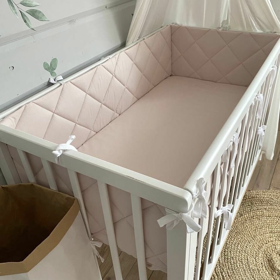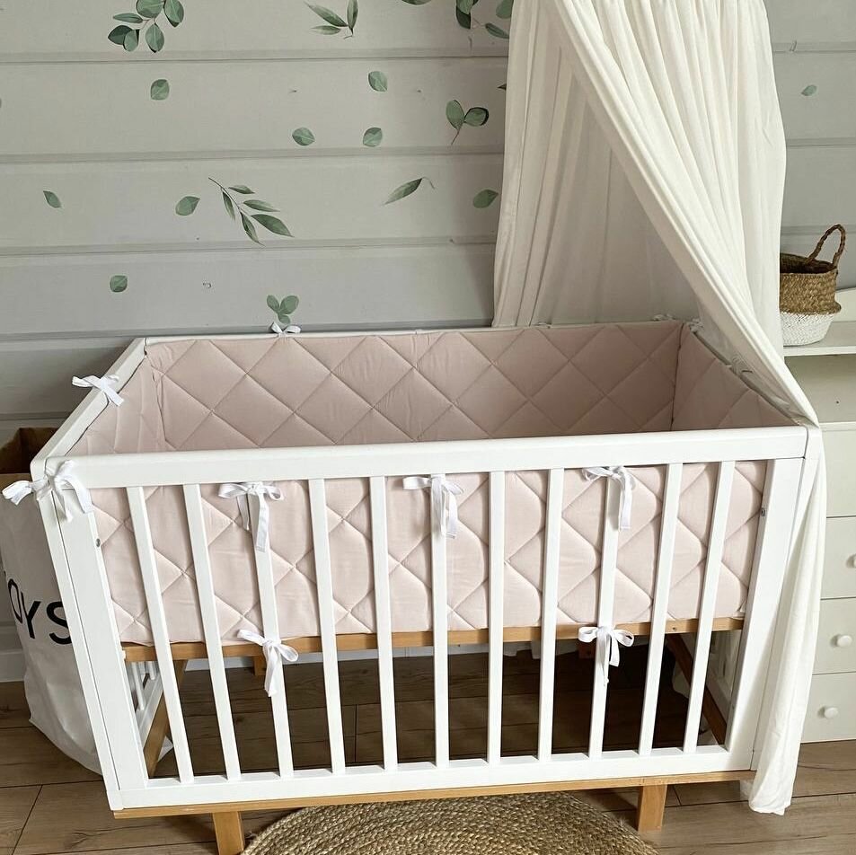 Бортики в кроватку для новорождённых, верба пудра, 100% хлопок, 60х30 см - 2 шт, 120х30 см - 2 шт, MamiBro