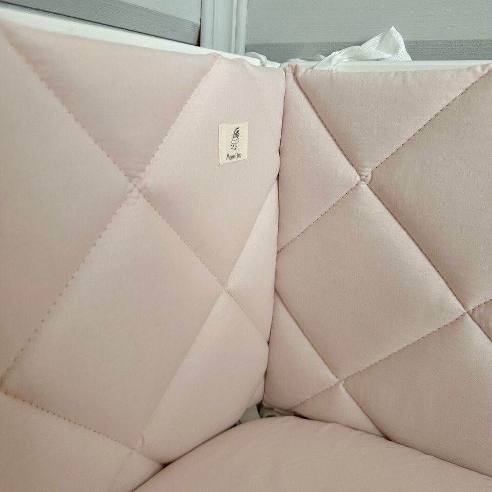 СохранитьБортики в кроватку для новорождённых стеганые MamiBro, 100% хлопок, 60х30 см - 2 шт, 120х30 см - 2 шт, бледно розовый интересное: