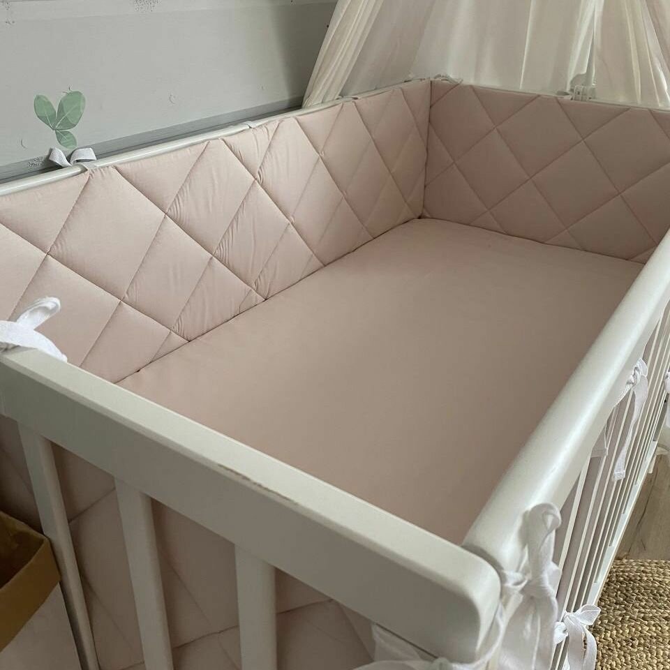 Бортики в кроватку для новорождённых стеганые MamiBro, 100% хлопок, 60х30 см - 2 шт, 120х30 см - 2 шт, пыльный бежевый