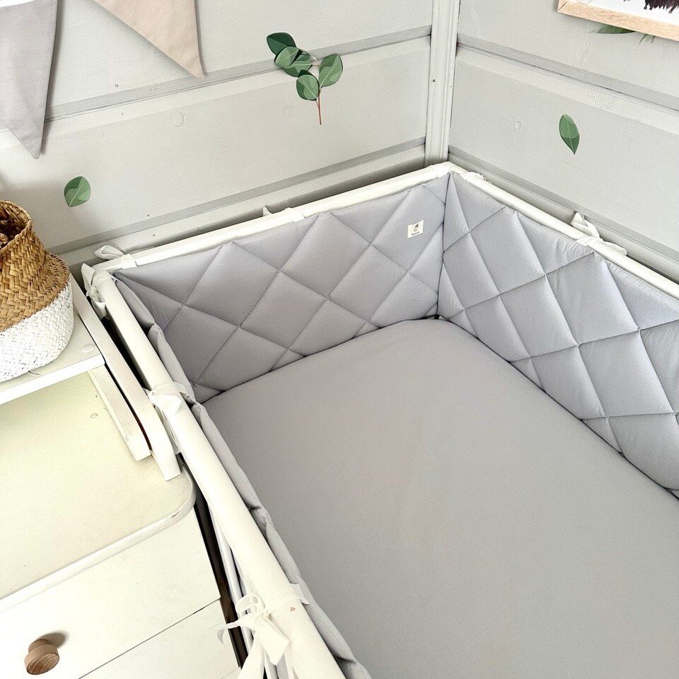 СохранитьБортики в кроватку для новорождённых стеганые MamiBro, 100% хлопок, 60х30 см - 2 шт, 120х30 см - 2 шт, серый интересное:
