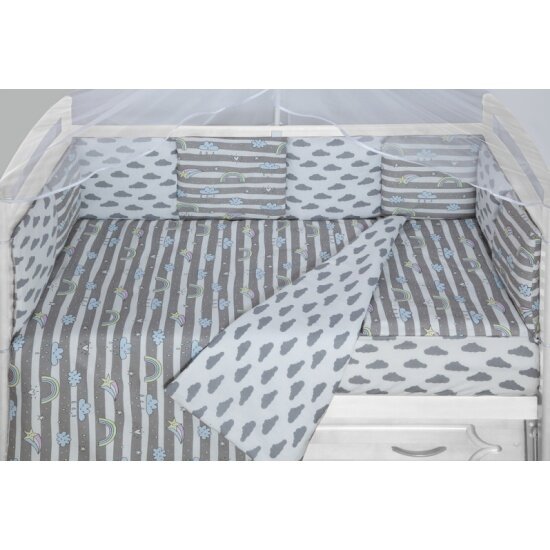 Купить Комплект в кроватку 3 предмета AmaroBaby BABY BOOM (Радуга, серый)