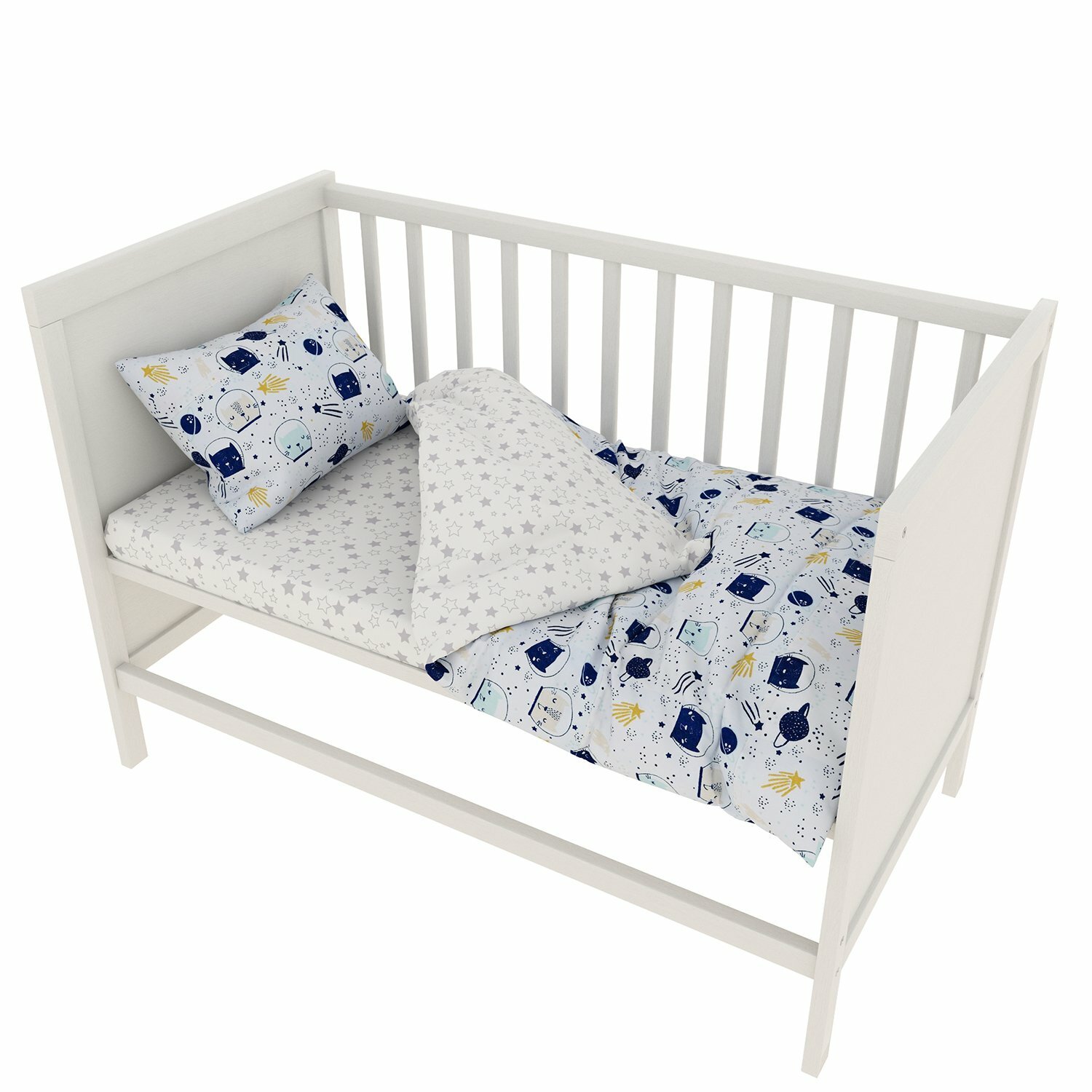 Купить Комплект в кроватку 3 предмета AmaroBaby BABY BOOM (Космос, белый)
