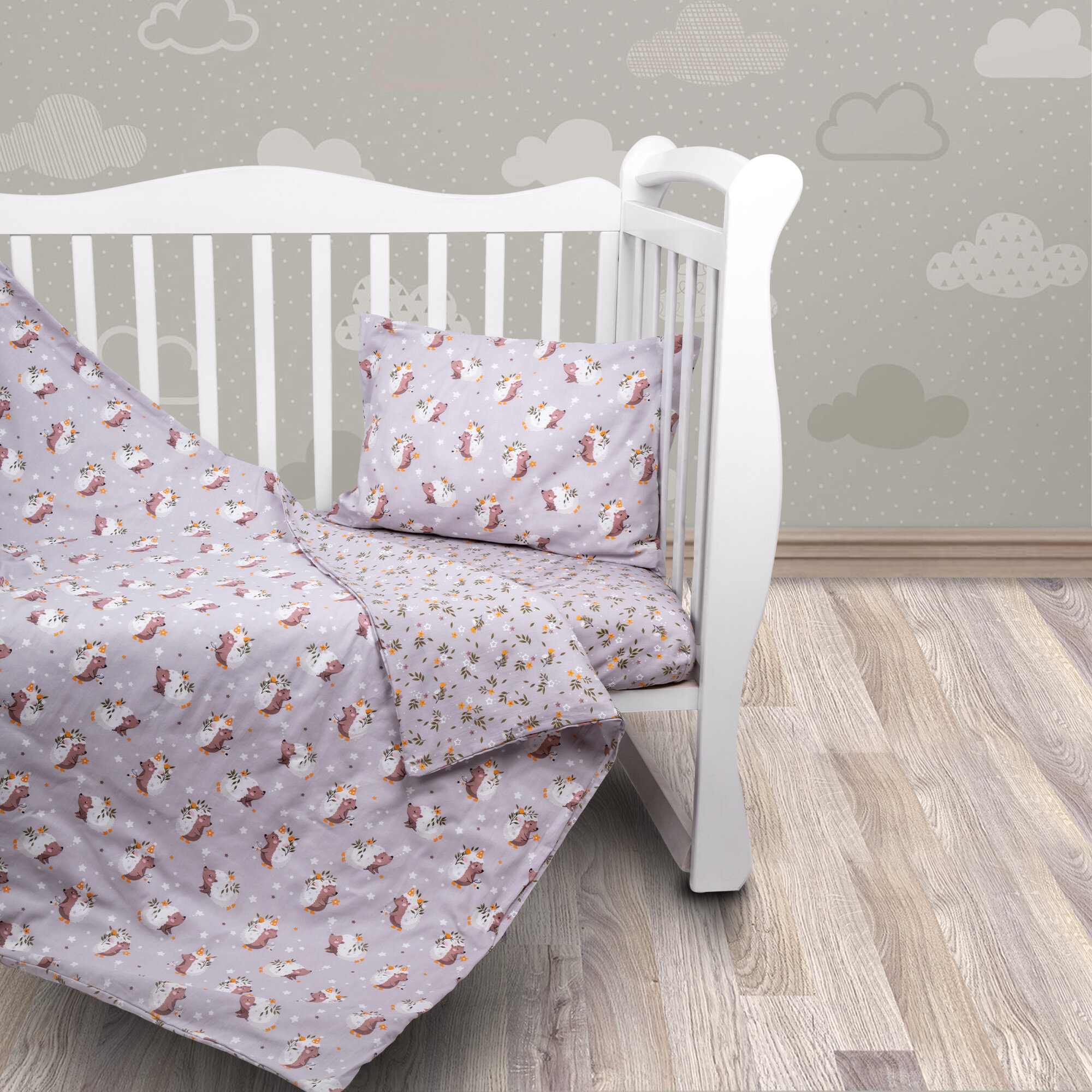 Купить Комплект в кроватку 3 предмета AmaroBaby BABY BOOM Милашка ёжик, серый
