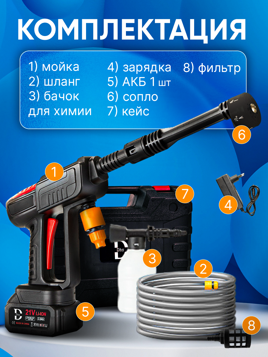 Мойка высокого давления DHY с 1 аккумулятором и кейсом интересное: