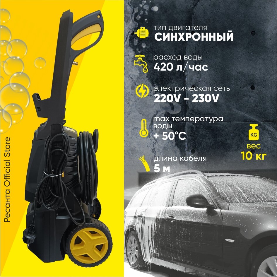 Мойка высокого давления М2500 PRO CAR / для авто, дорожек и фасадов зданий / автомойка 2500 Вт