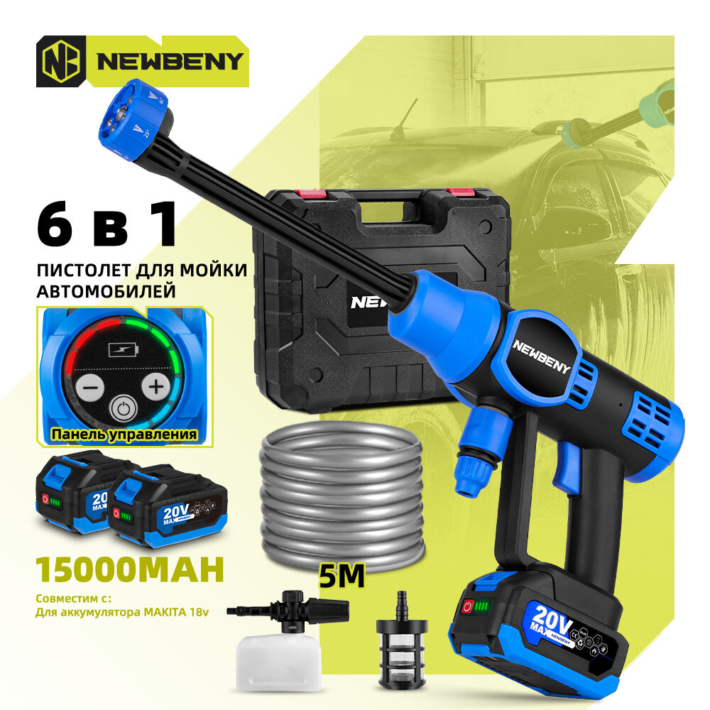 Купить Портативный беспроводной электрический набор мойки высокого давления Newbeny / мойка высокого давления аккумуляторная для автомобиля