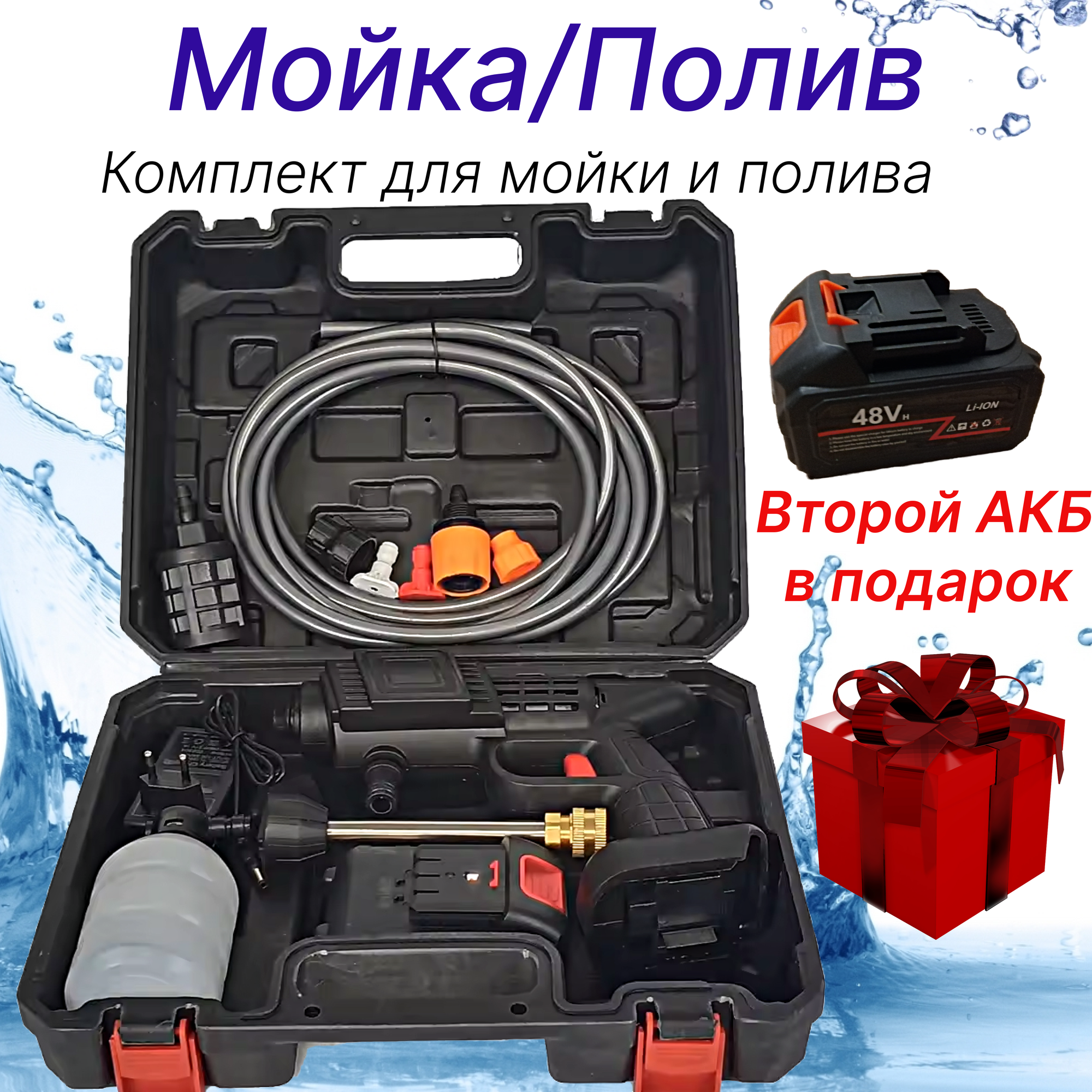 Автомойка высокого давления 48V, 2 аккумулятора, в кейсе / Мини мойка для автомобиля, вело и мото транспорта беспроводная, портативная интересное:
