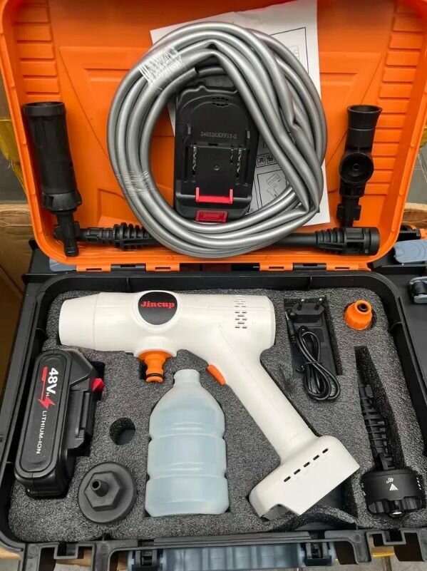 Беспроводная аккумуляторная мойка высокого давления Jincup для автомобиля с мультинасадкой интересное: