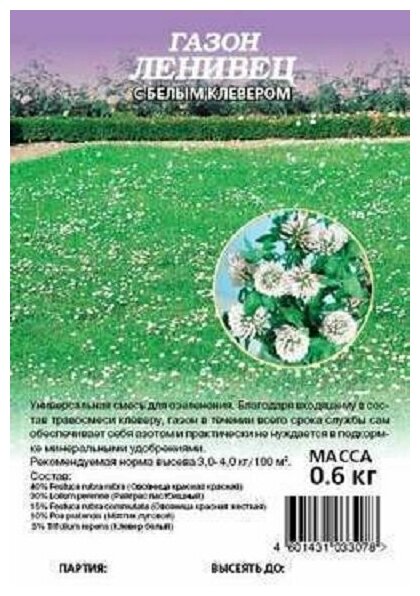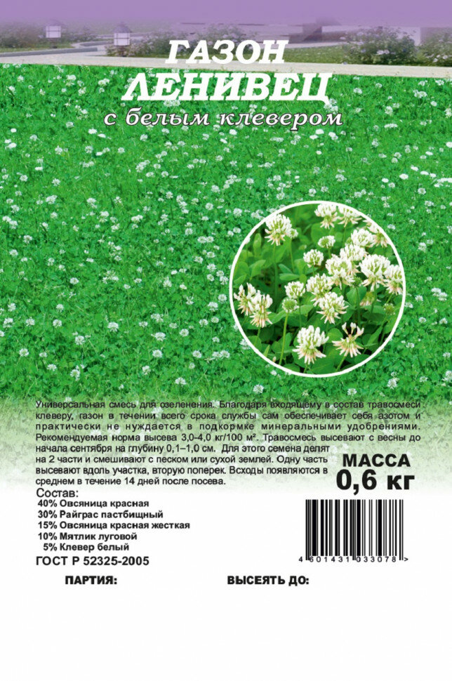 Семена Газон Ленивец с белым клевером, 0,6кг, Гавриш интересное: