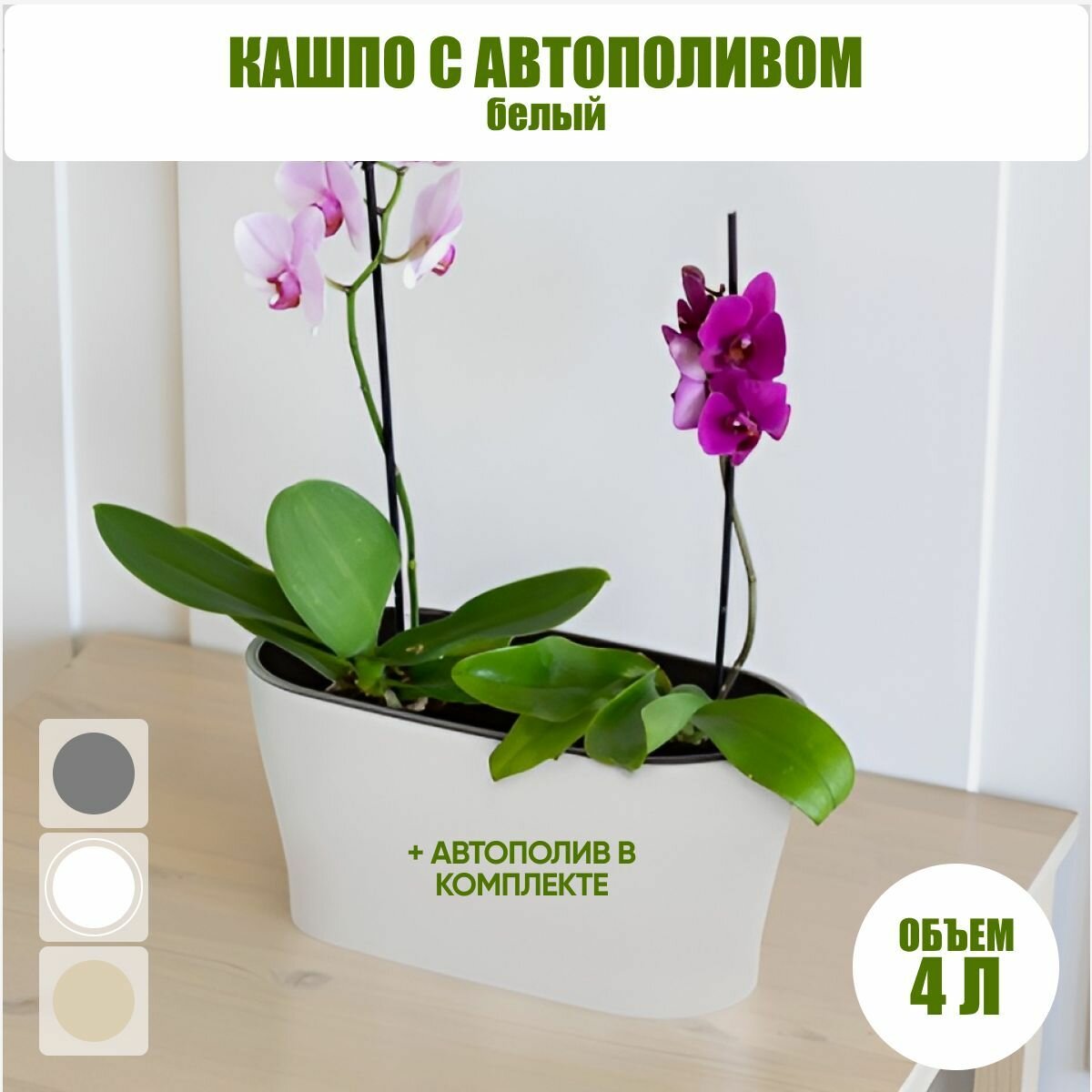 Купить Горшок овальный двойной с автополивом Лея 4л, Белый