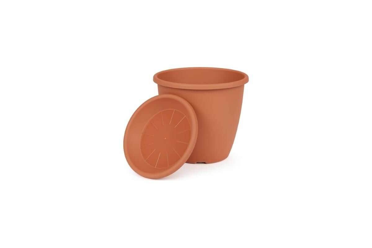 Горшок цветочный Афина с поддоном, диаметр 11 см, объём 0,5л, цвет коричневый, пластик, Альтернатива М6487