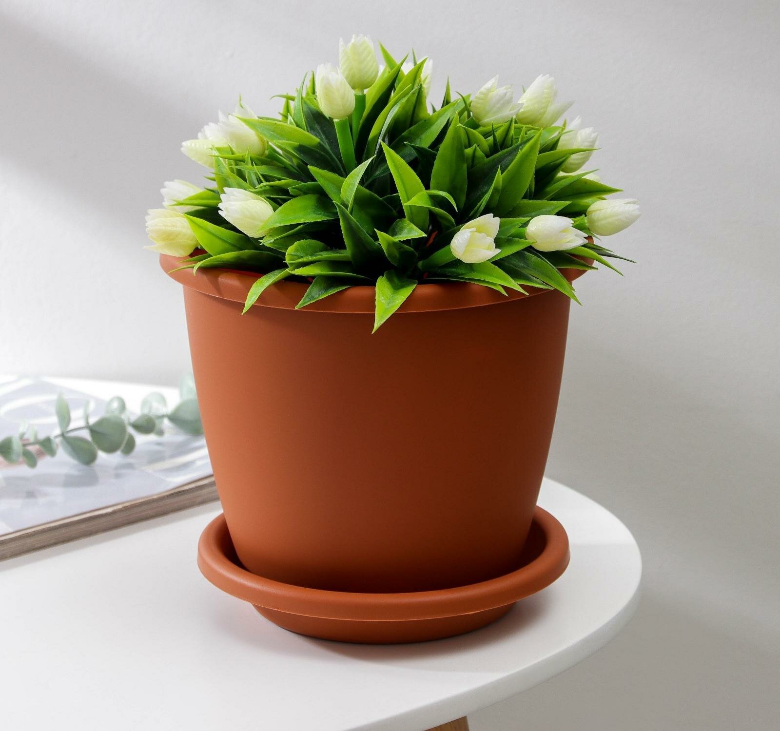 Горшок цветочный Афина 2,2 л с поддоном (коричневый) (M6522)