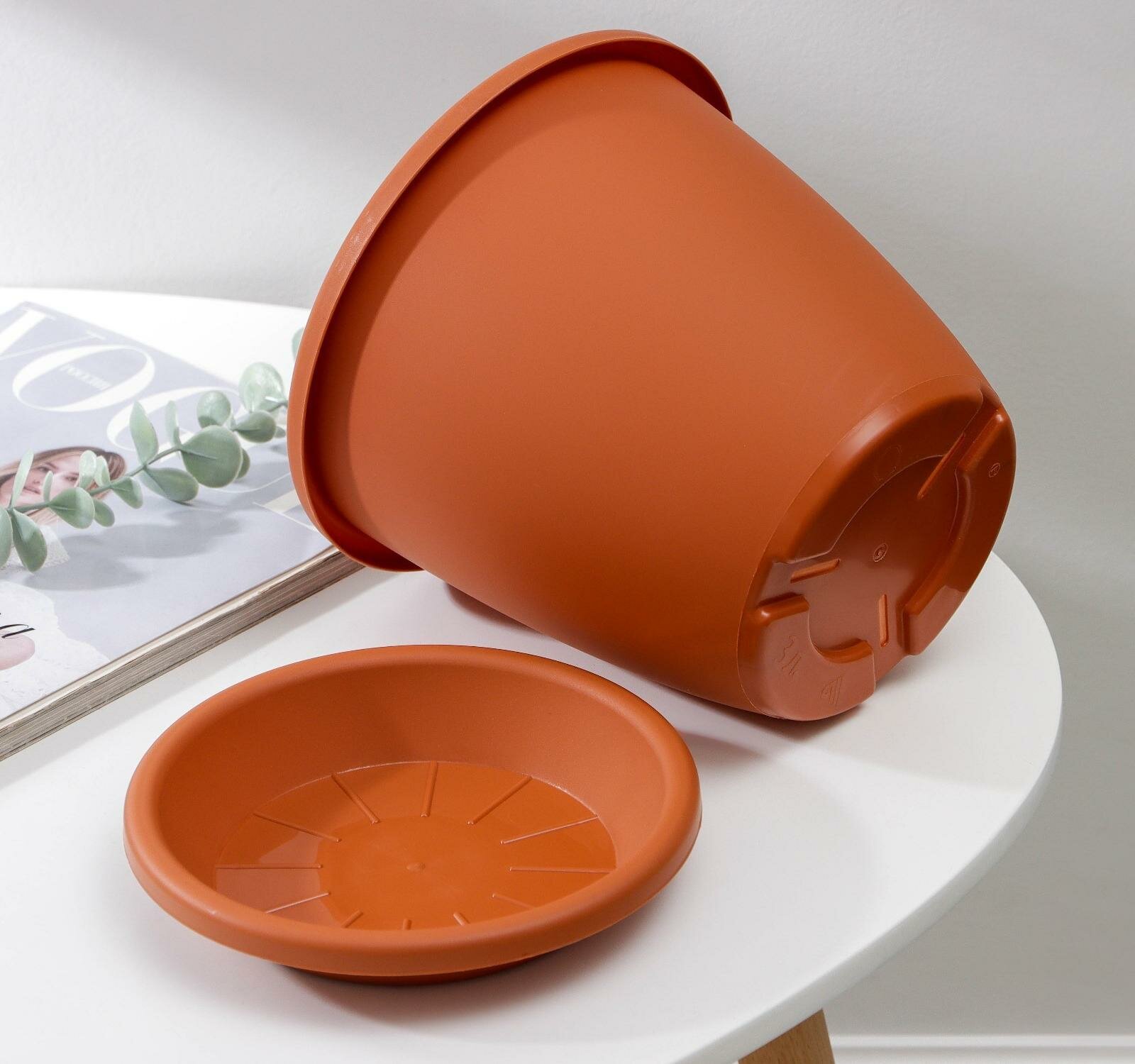 Горшок для цветов с поддоном 3л d19,5см h17,5см "Афина", цвет коричневый 2947544