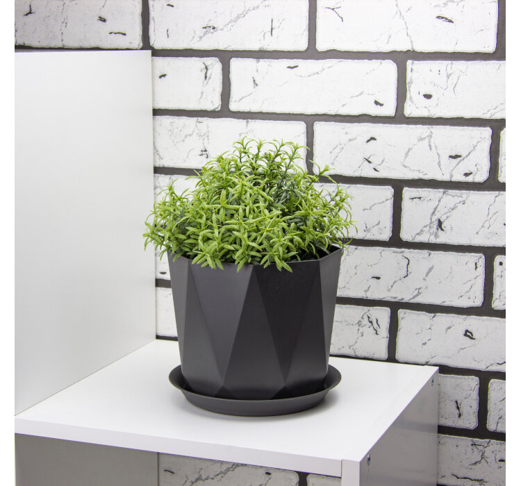 Кашпо Призма с поддоном, диамет 130 мм, объём 1 л, цвет Графитовый, IDEA (М-Пластика) М3137