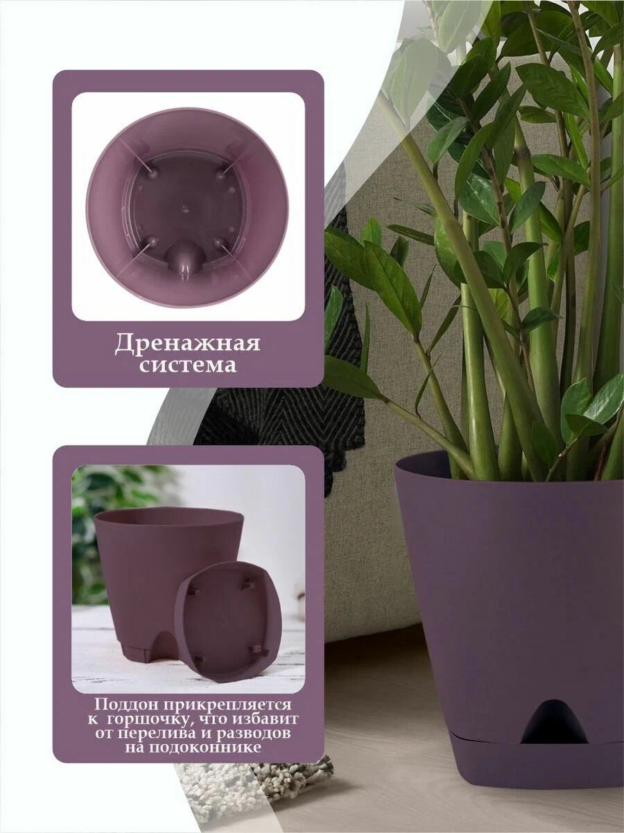 Горшок для растений и цветов с поддоном 2,5л, морозная слива