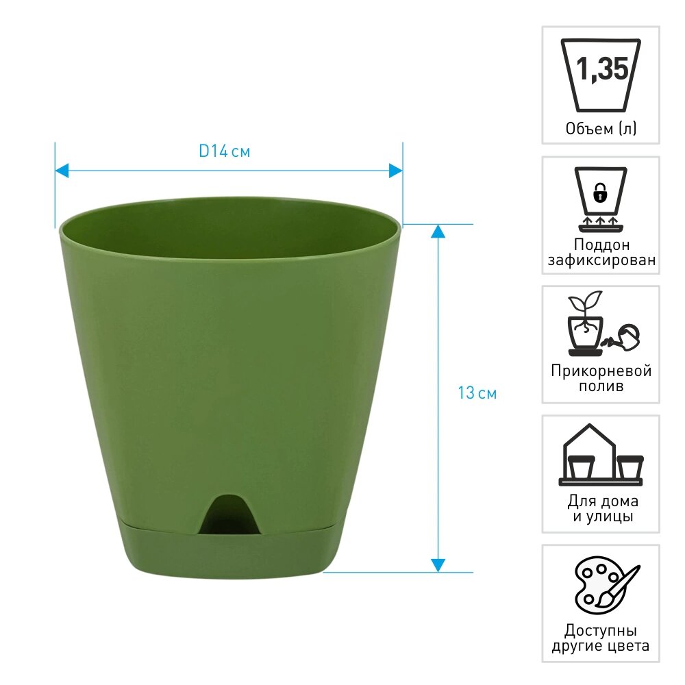 Горшок для цветов 1,35л (ДхШхВ) 14х14х13см с прикорневым поливом горшок цветочный пластиковый кашпо для цветов уличное