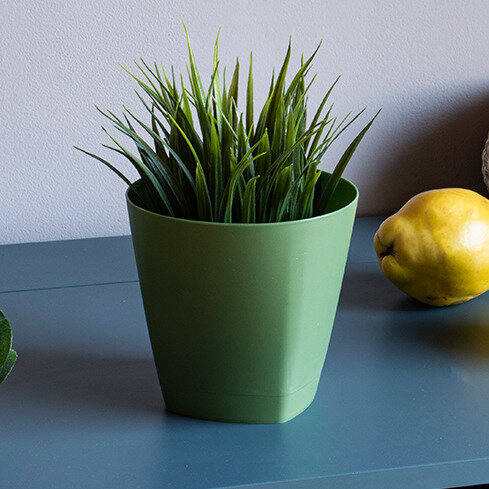 Горшок для цветов "Ingreen", Amsterdam, пластик, 0,65 л, 11х11х10 см, с прикорневым поливом, цвет Оливковый