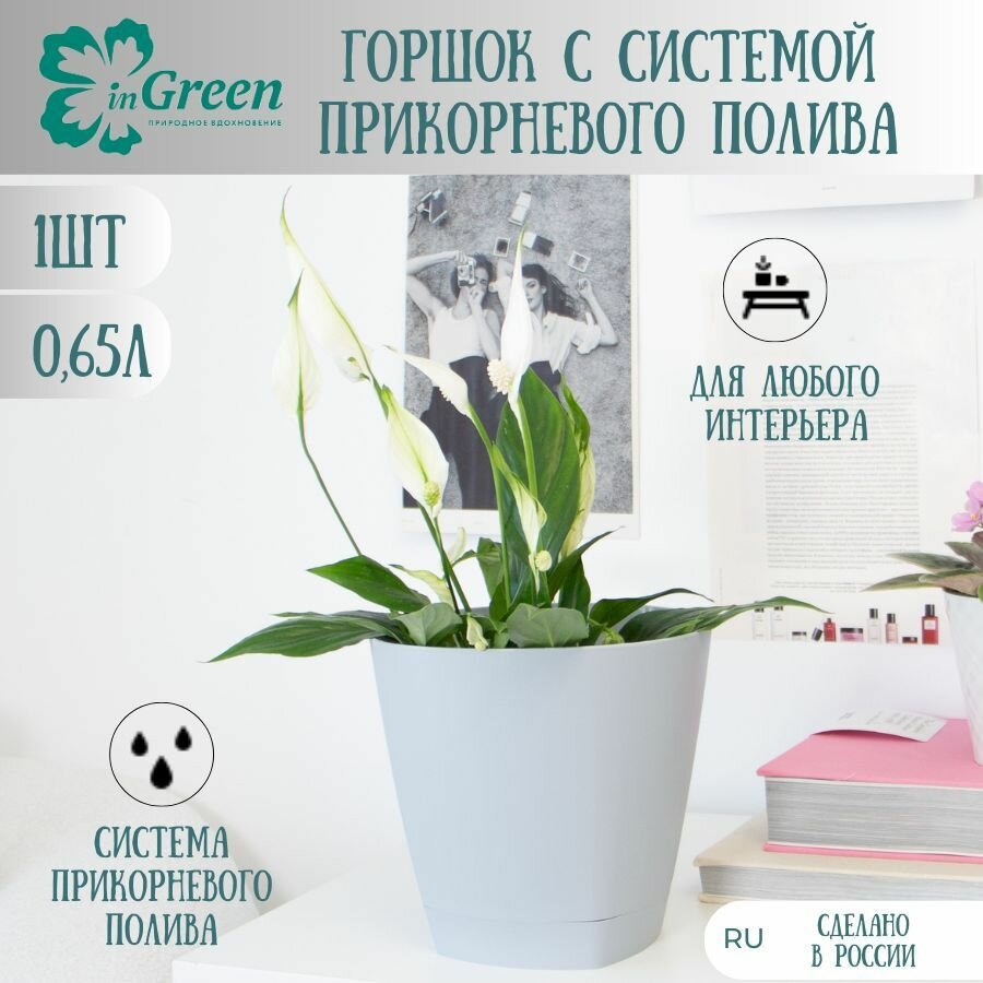 Горшок для цветов с прикорневым поливом, 2.5 л., Amsterdam, утренний туман, InGreen (IG620010025) (INGREEN)