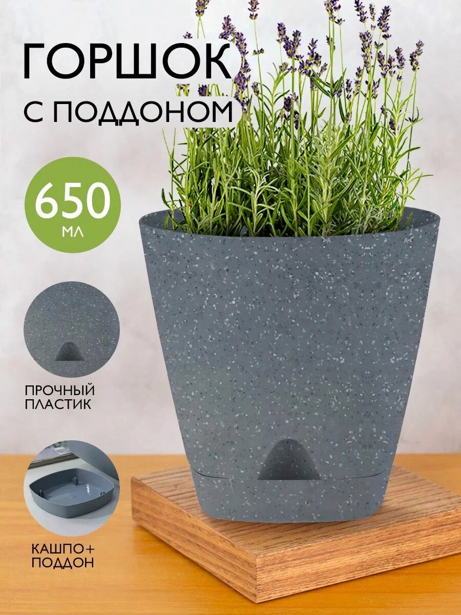 Купить Горшок для растений и цветов с поддоном 0,65 л, темный камень 6298