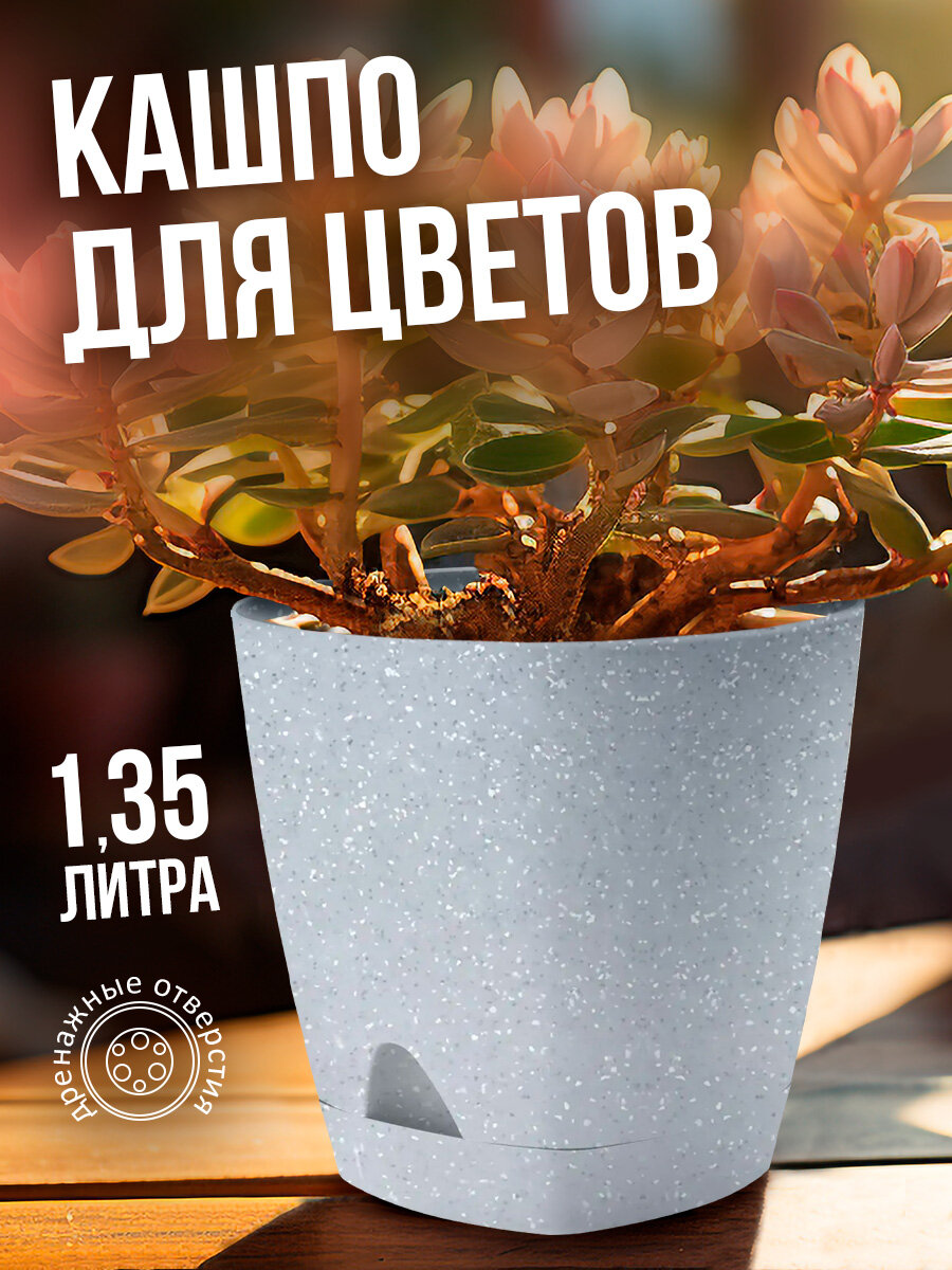 Купить Горшок для растений и цветов с поддоном 1,35 л, светлый камень 6299
