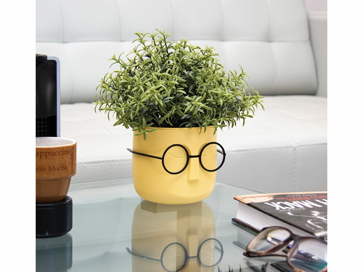 Кашпо пластик, 0.65 л, 11.5х10.5 см, со вставкой, банановое, Idea, Стив, М 3079