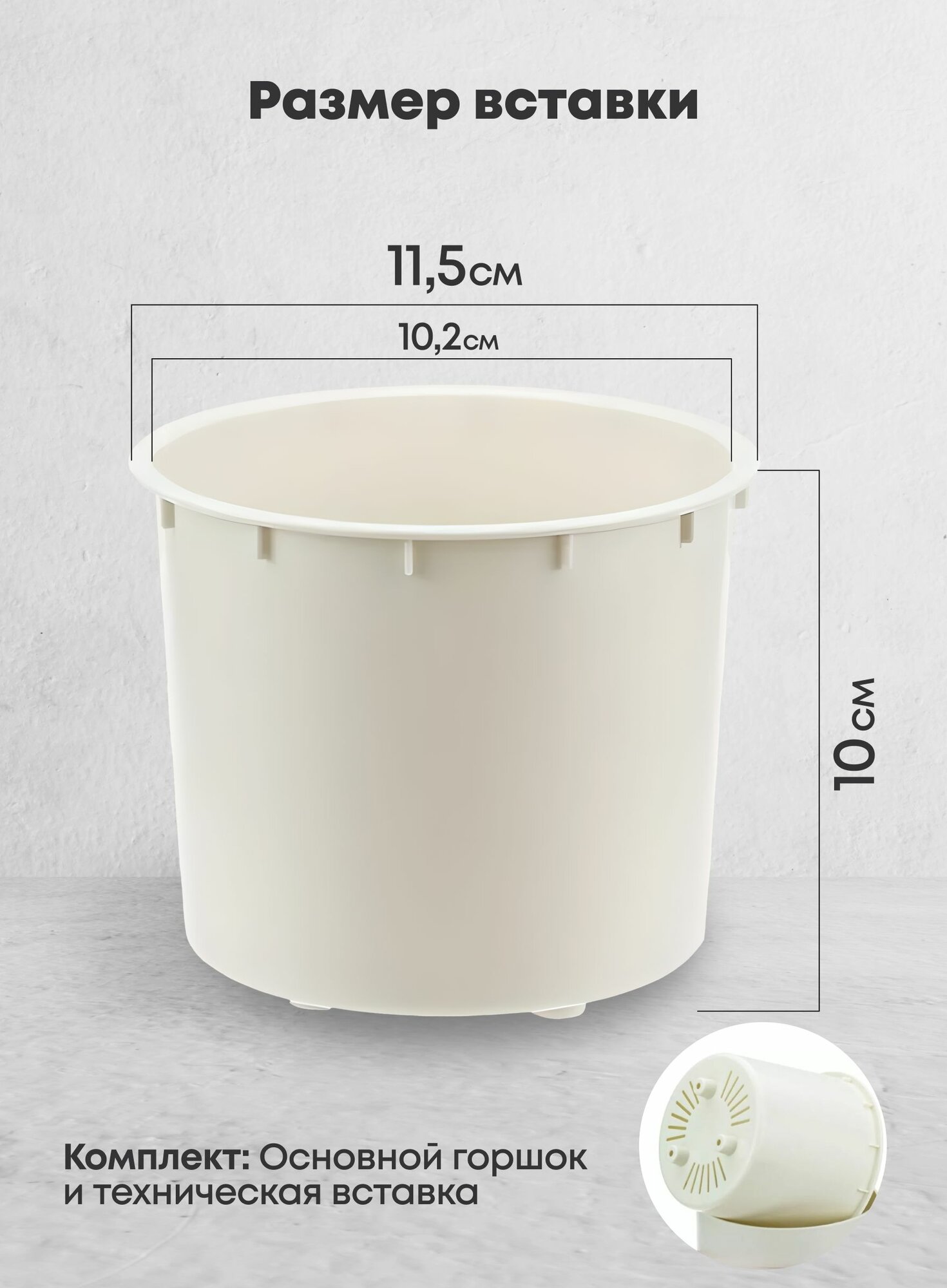 Кашпо мари D115мм 0,65л со вставкой Белая Глина