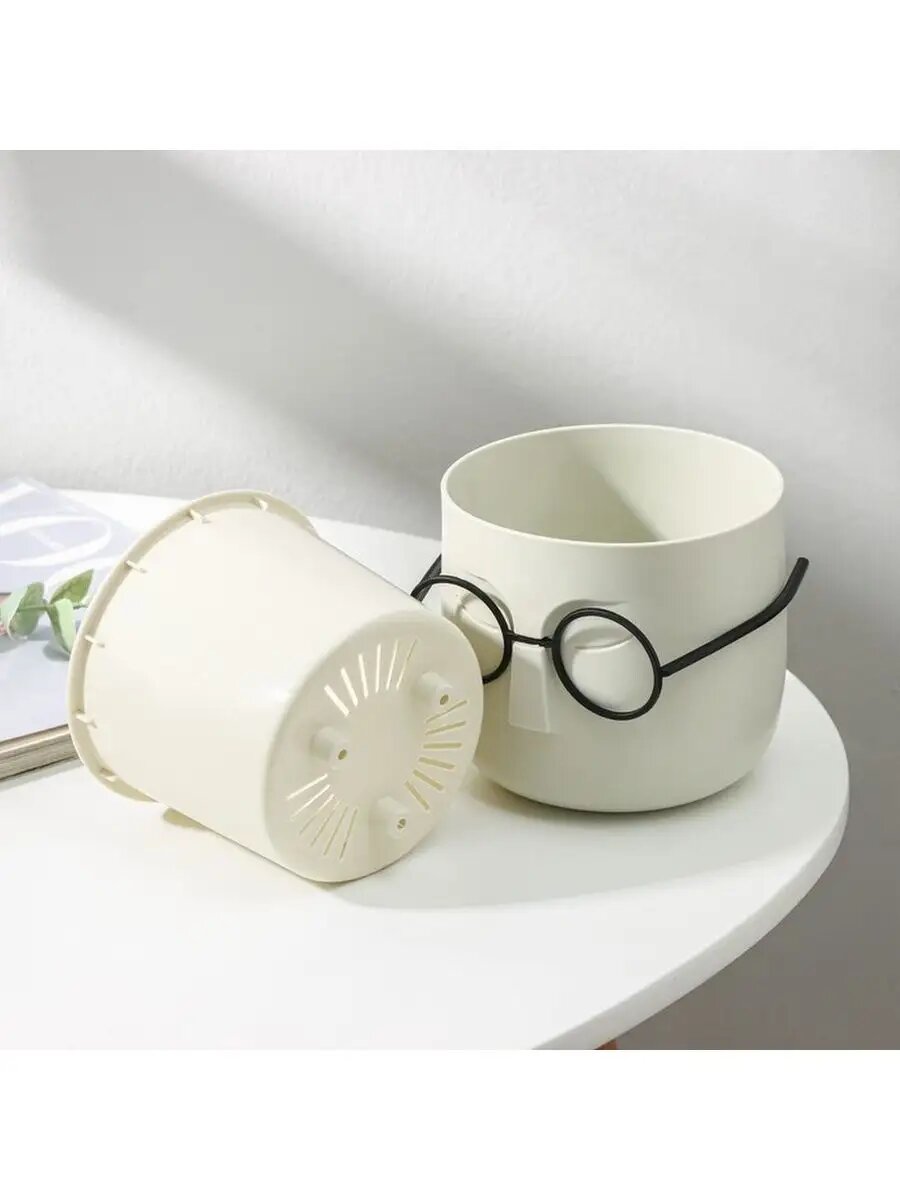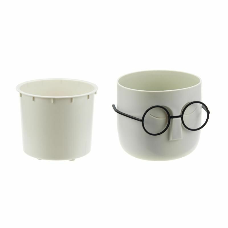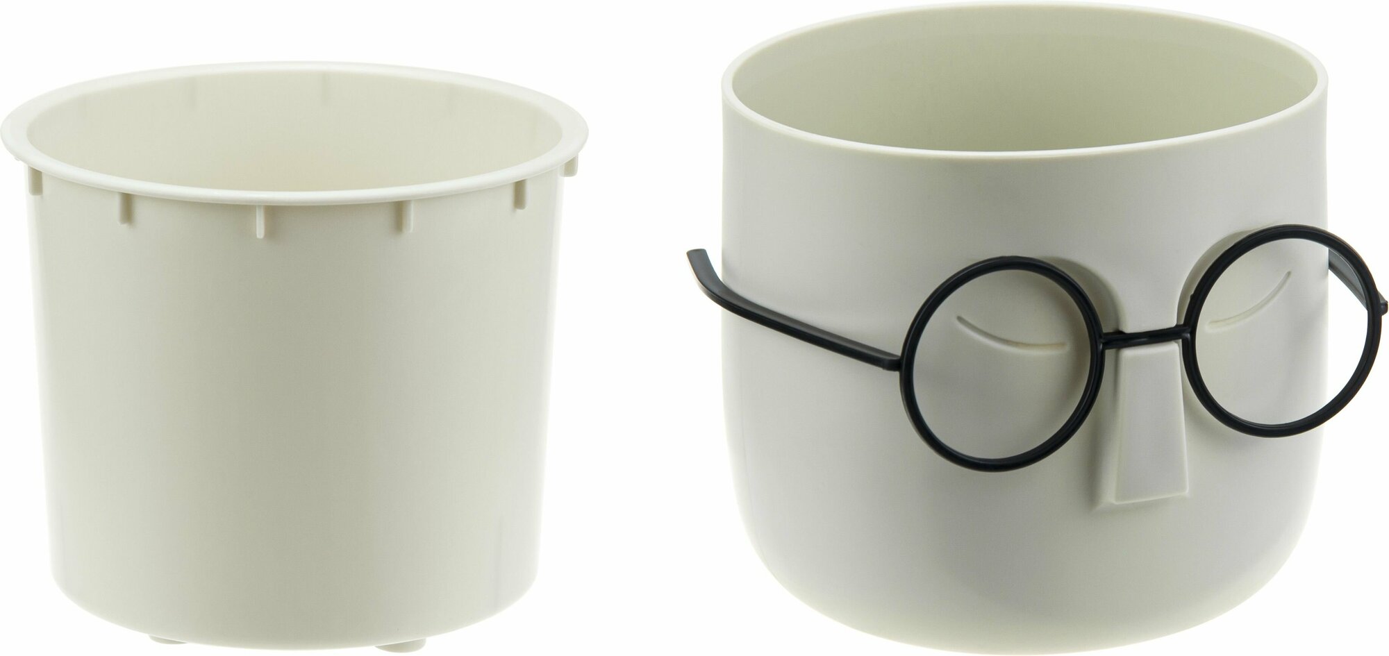 Кашпо пластик, 0.65 л, 11.5х10.5 см, со вставкой, белая глина, Idea, Мари, М 3075
