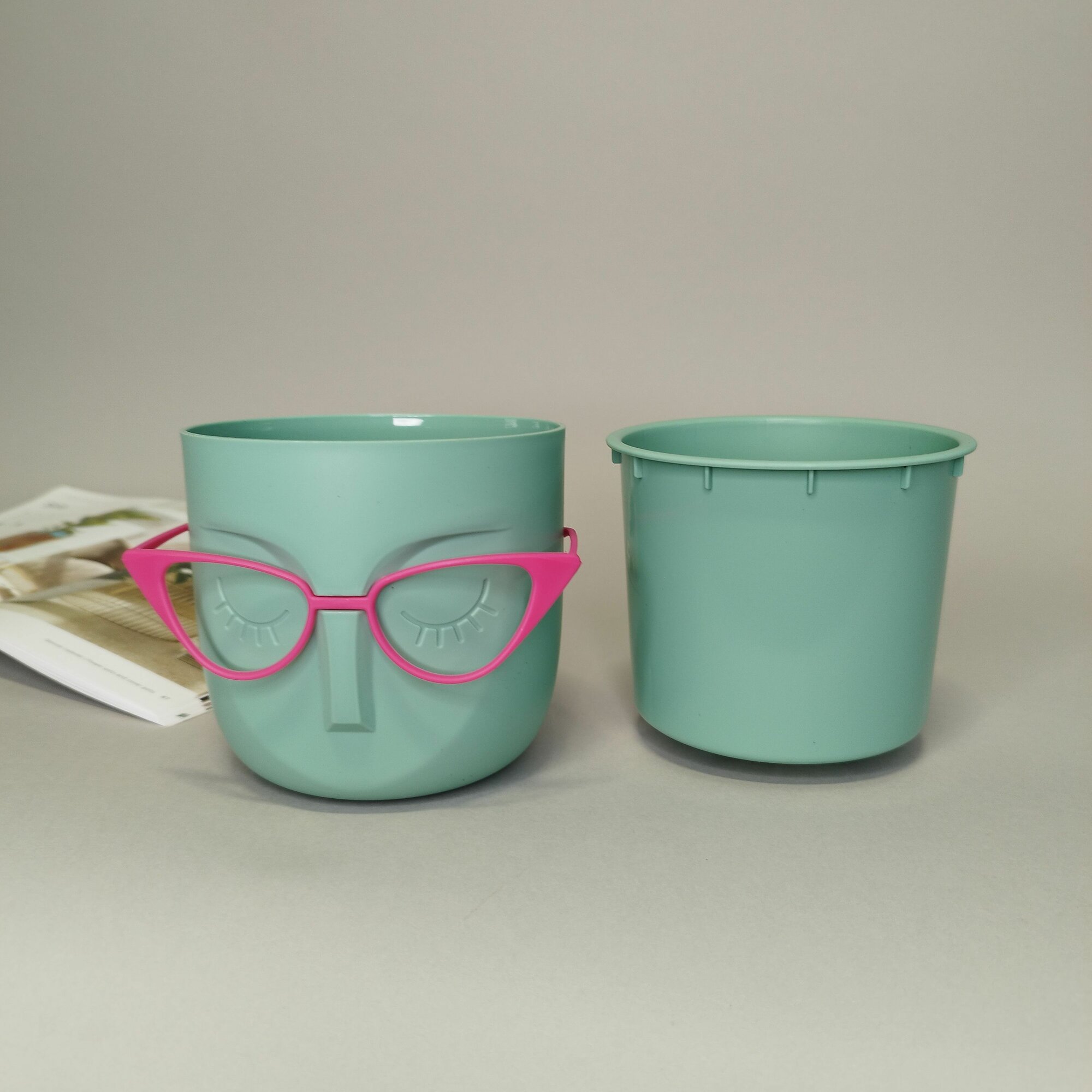 Кашпо пластик, 0.65 л, 11.5х10.5 см, со вставкой, фисташковое, Idea, Мари, М 3075