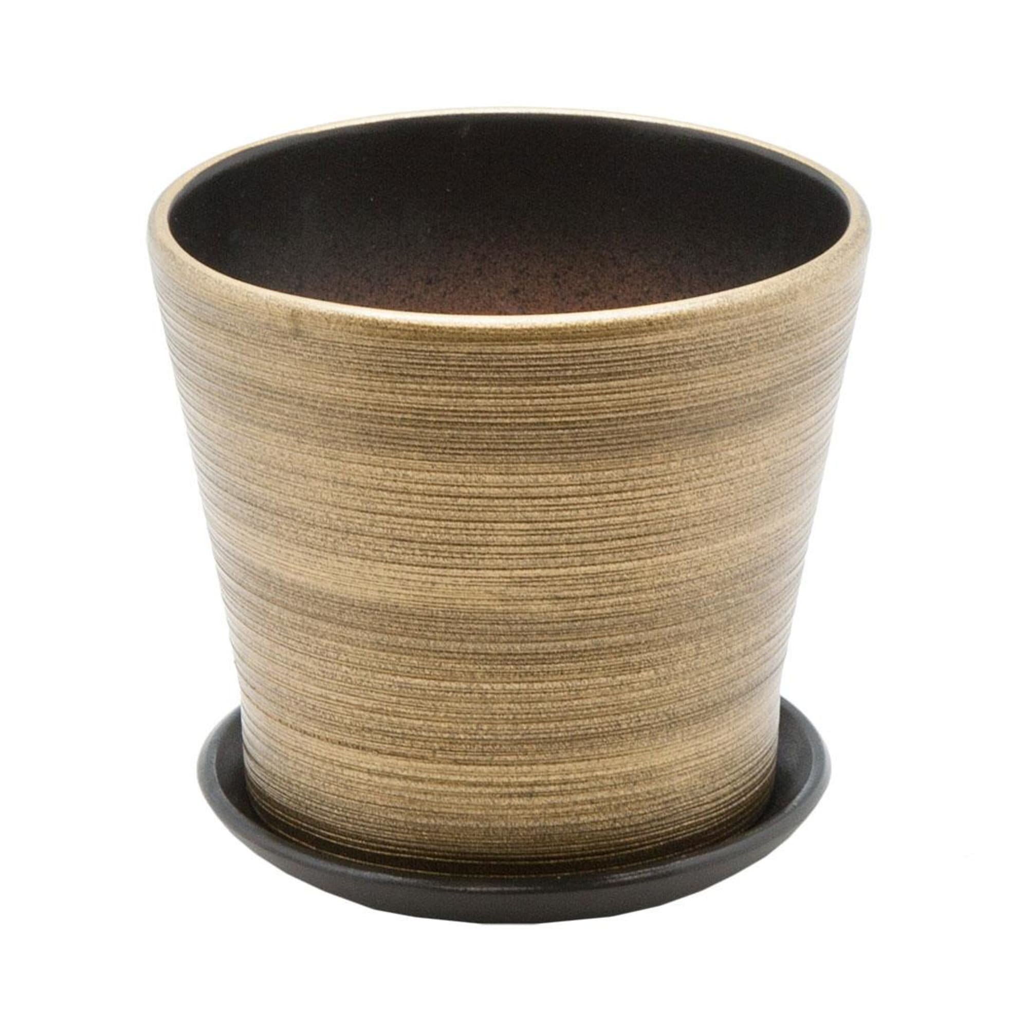 Купить Керамический горшок цветочный ВеЩицы с подставкой блюдцем / Горшок для цветов с поддоном / Горшок для растений / 14,7х14,7х13 см, объем 1 л, цвет бронзовый глянцевый