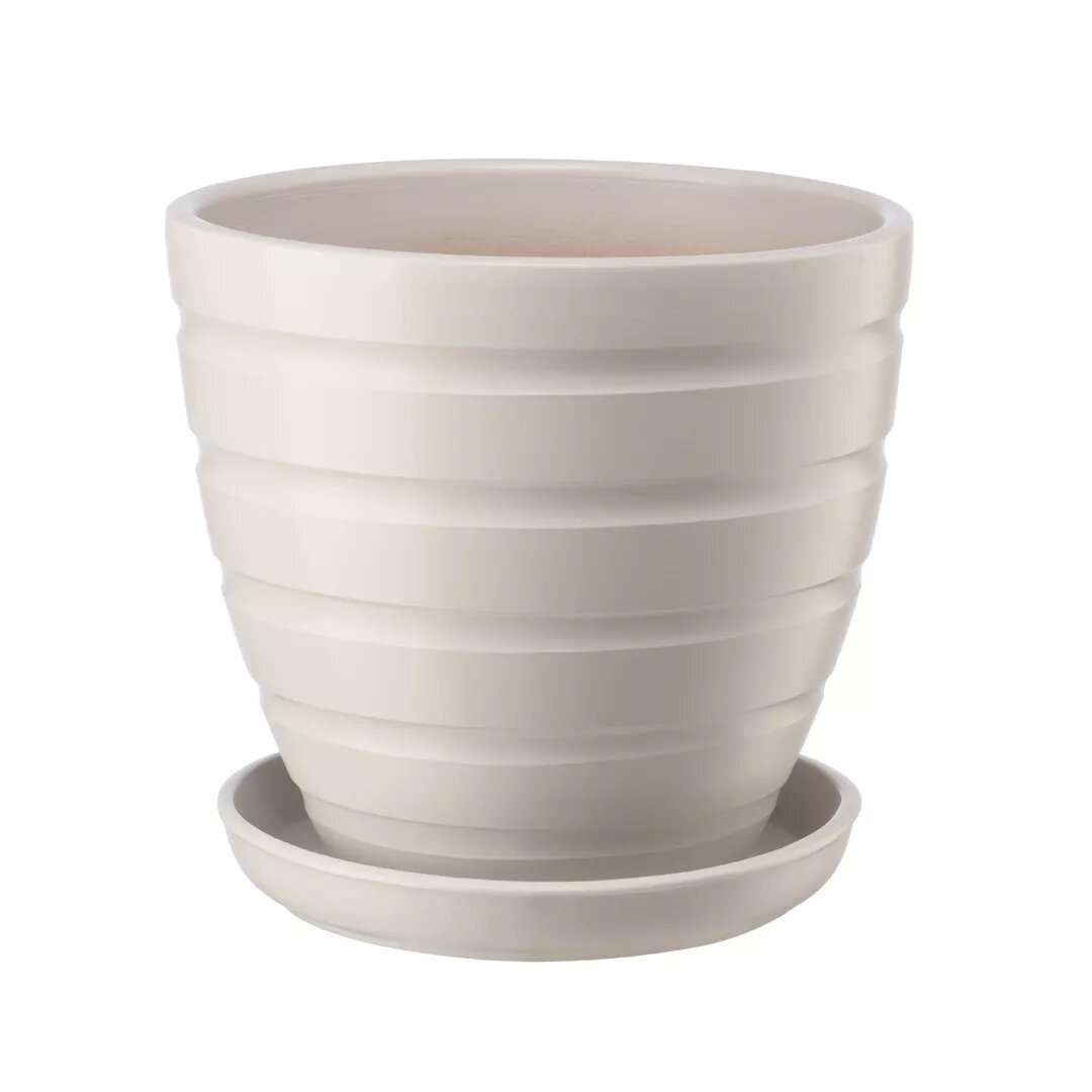 Керамический горшок цветочный ВеЩицы с подставкой блюдцем / Горшок для цветов с поддоном / Горшок для растений / объем 1,4 л, цвет капучино