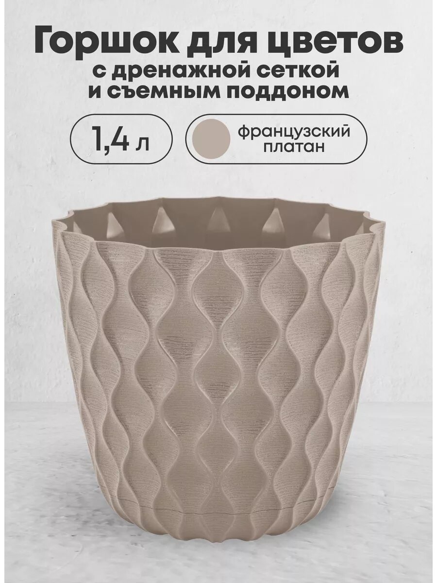Горшок для цветов InGreen Wave с дрен. сеткой и съемным поддоном 4,7л D205мм французский платан