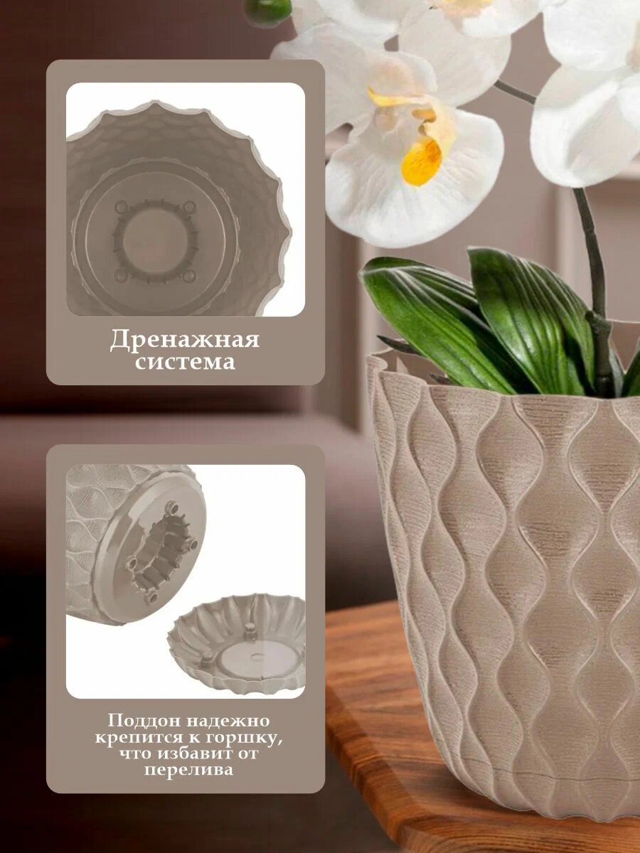Горшок для цветов пластиковый 2,5л d-17,5см «Wave» с дренажной сеткой и съемным поддоном, вулканический серый