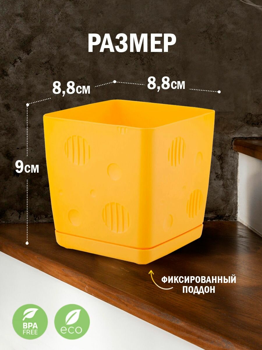 Горшок для цветов 0,65л (ДхШхВ) 11,5х11,5х10,4 см с дренажной сеткой и съемным поддоном, горшок пластиковый, кашпо для цветов уличное