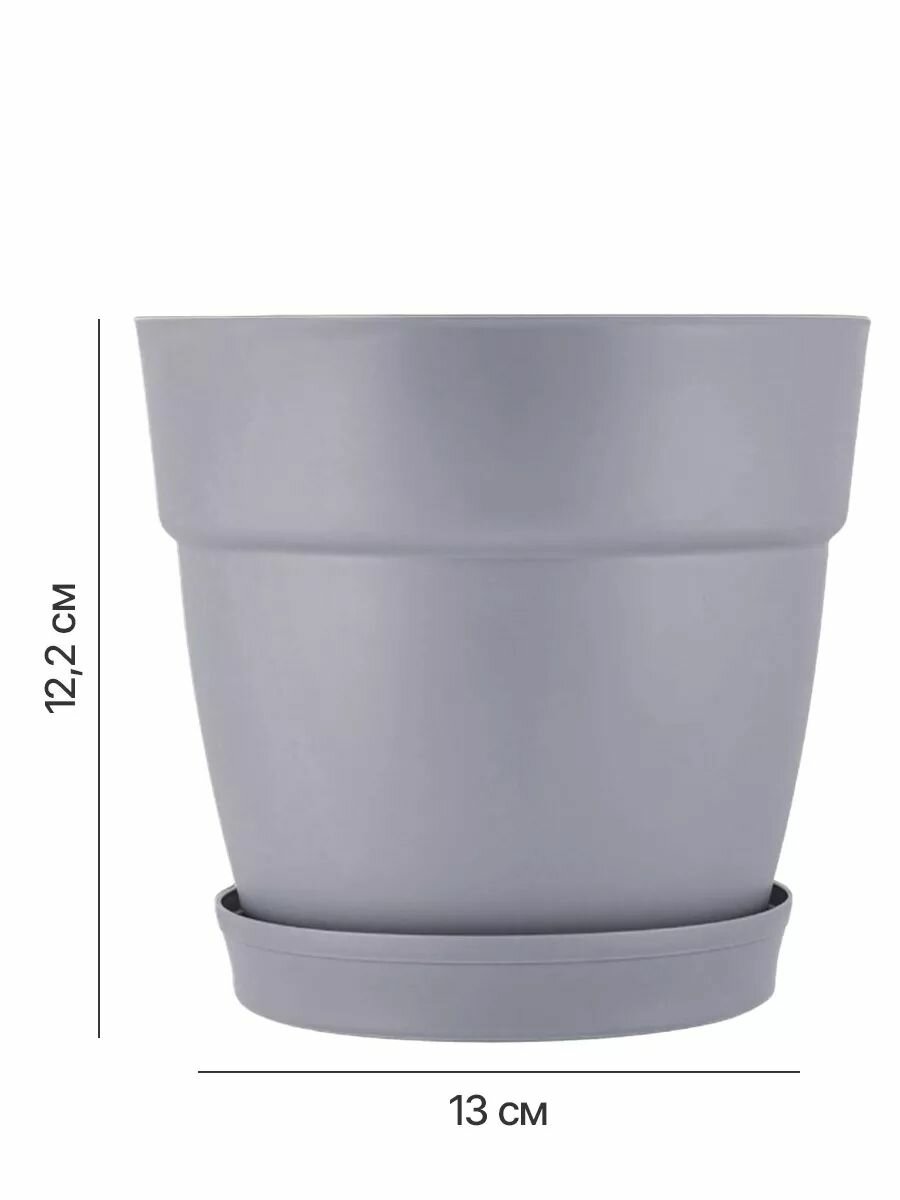 Горшок для цветов с поддоном, 1.4 л, d=14.5 см, цвет серый