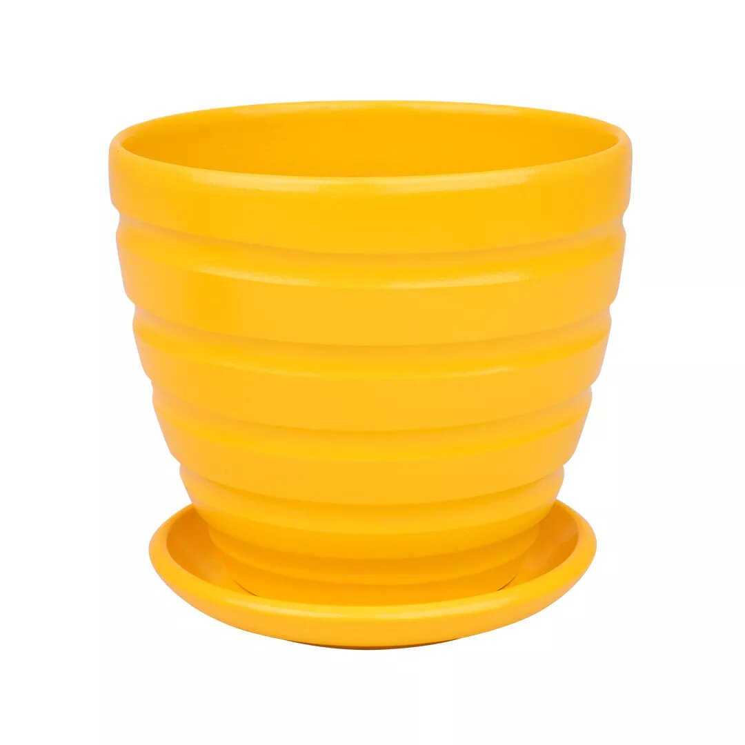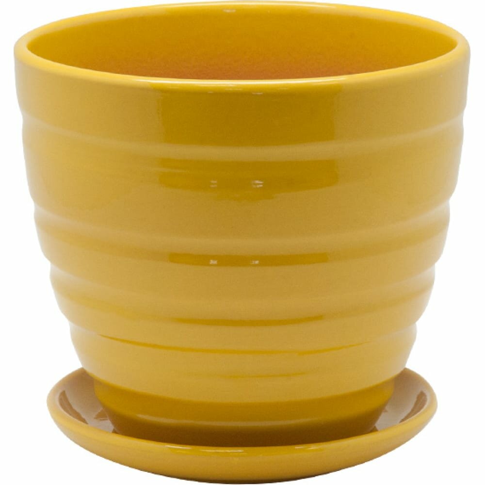 Купить Керамический горшок цветочный ВеЩицы с подставкой блюдцем / Горшок для цветов с поддоном / Горшок для растений / 14,5х14,5х13 см, объем 1,4 л, цвет желтый