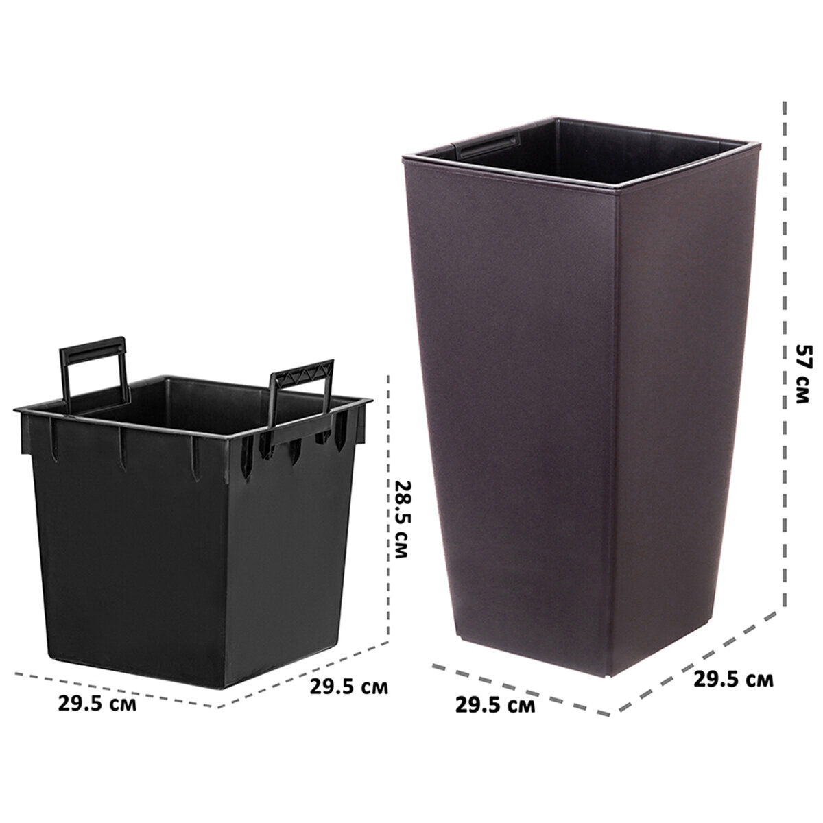 | Дополнительная информация | Кашпо "Камелия" 29,5х29,5х57 см 42 л, венге, размер дна 21,5х21,5 см, с черным ведром внутри - 29,5х29,5х28,5 см 17 л (модель 570) |