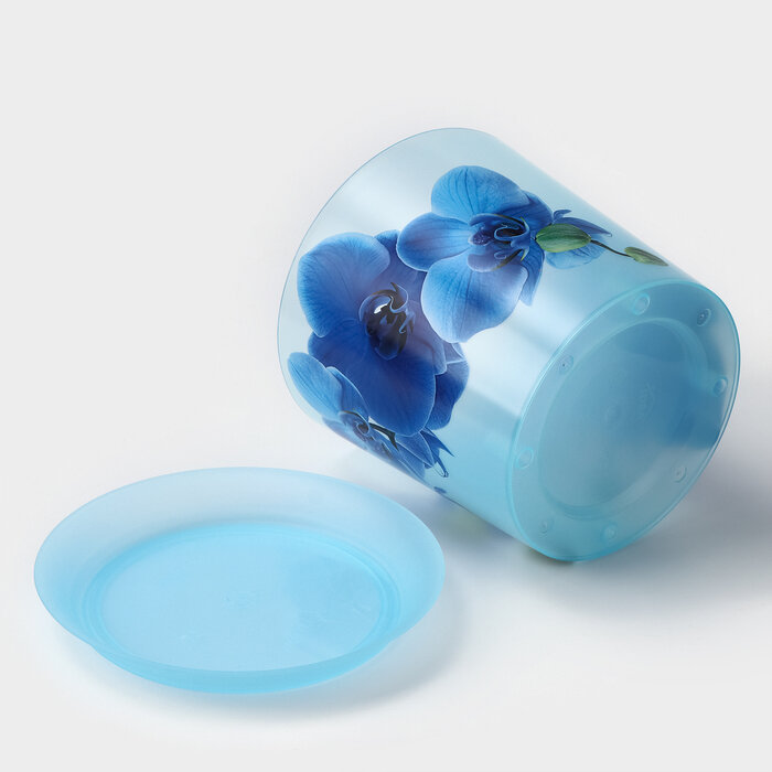 Горшок для орхидей с поддоном «Деко», 2,4 л, пластиковый, цвет голубой