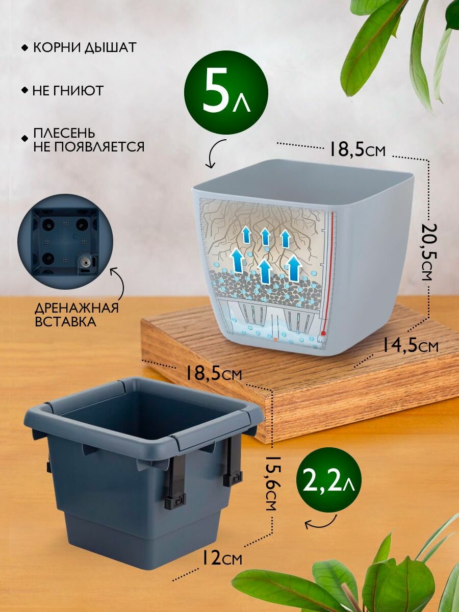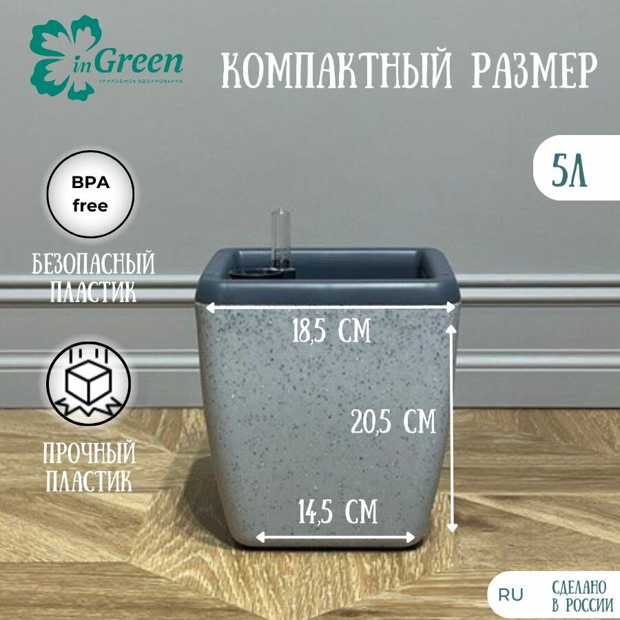 Горшок с автополивом InGreen Munchen 5л с внутренней вставкой 2,2л, квадратный, Утренний туман IG622 .
