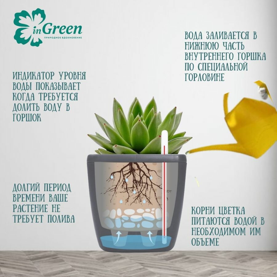Комплект 7 штук, Горшок с автополивом InGreen 1.5л с внутр.встав,Утренний туман,IG622311025