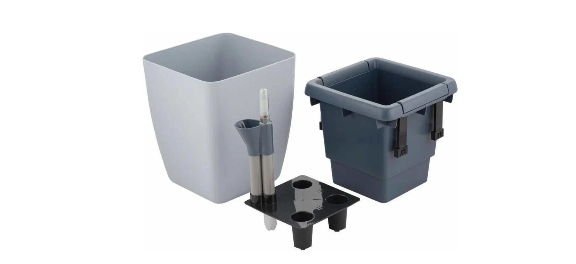Комплект 5 штук, Горшок с автополивом Munchen 1.5л с вставкой 0.85л,квадратн,сер,IG622311026