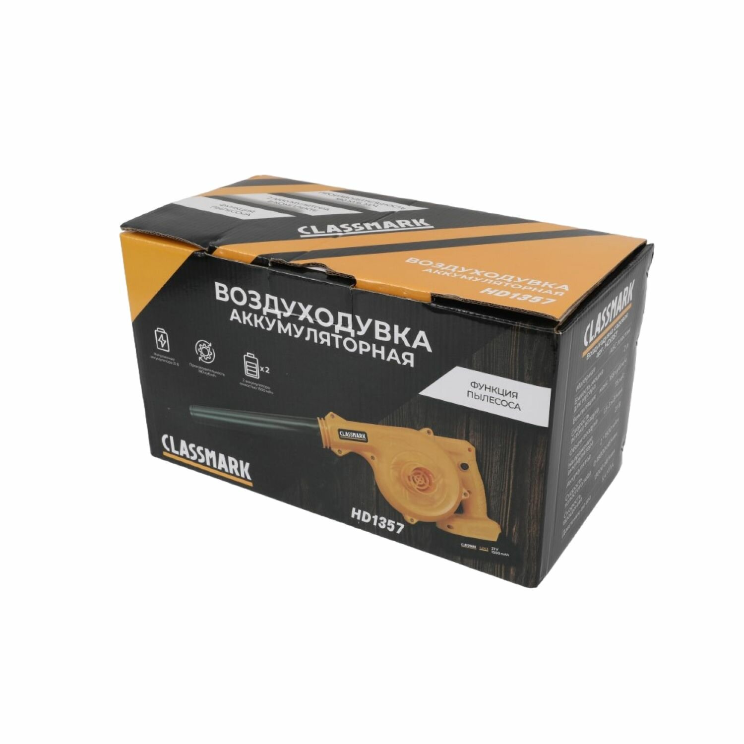 Купить Воздуходувка аккумуляторная Classmark HD1357 электрическая, с функцией пылесоса, травосборник 2 л, скорость воздушного потока 75 м/с, черный и желтый