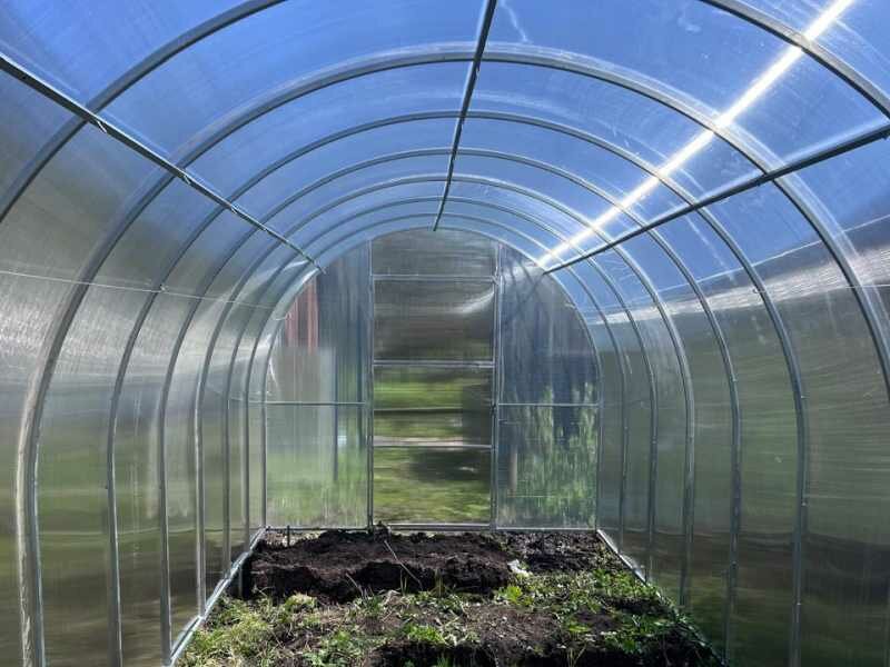 Теплица из поликарбоната Урожай, 2х4 метра, арочная, оцинкованная, с дверями и форточками в торцах