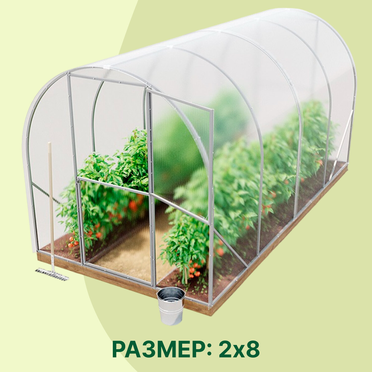 Купить Теплица из поликарбоната Урожай, 2х8 метров, арочная, оцинкованная, с дверями и форточками